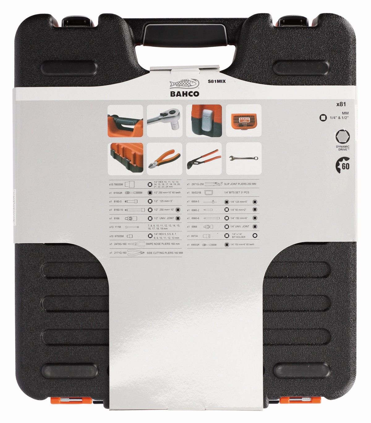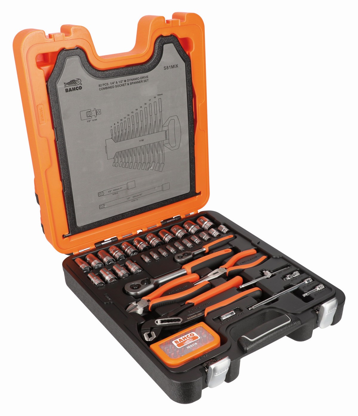 Juego de vasos con cuadrado de 1/4" y 1/2", con perfil hexagonal métrico y llave combinada/juego de puntas/alicates | S81MIX de BAHCO