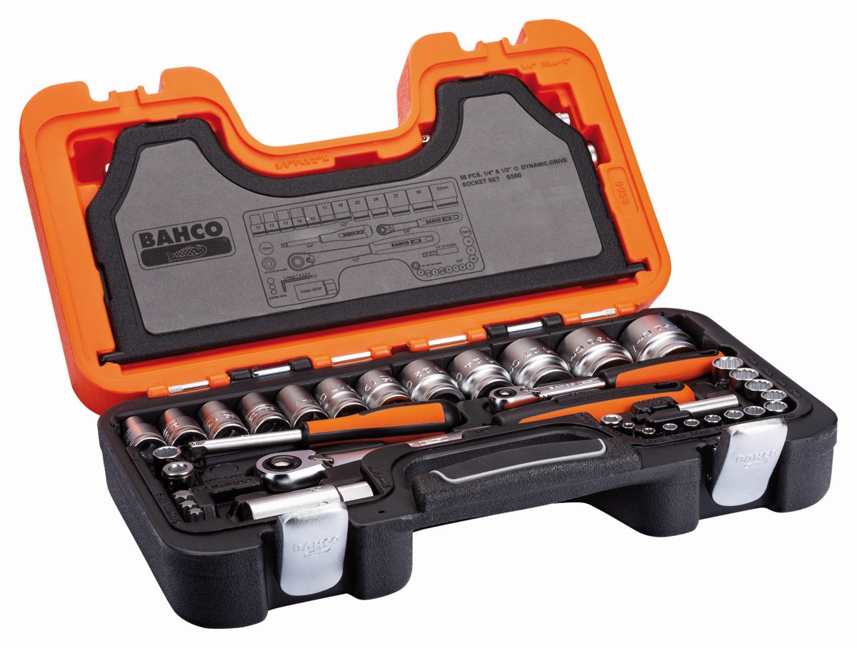 Juego de vasos con cuadrado de 1/4" y 1/2", con perfil bi-hexagonal métrico y carraca de cabeza delgada | S560 de BAHCO