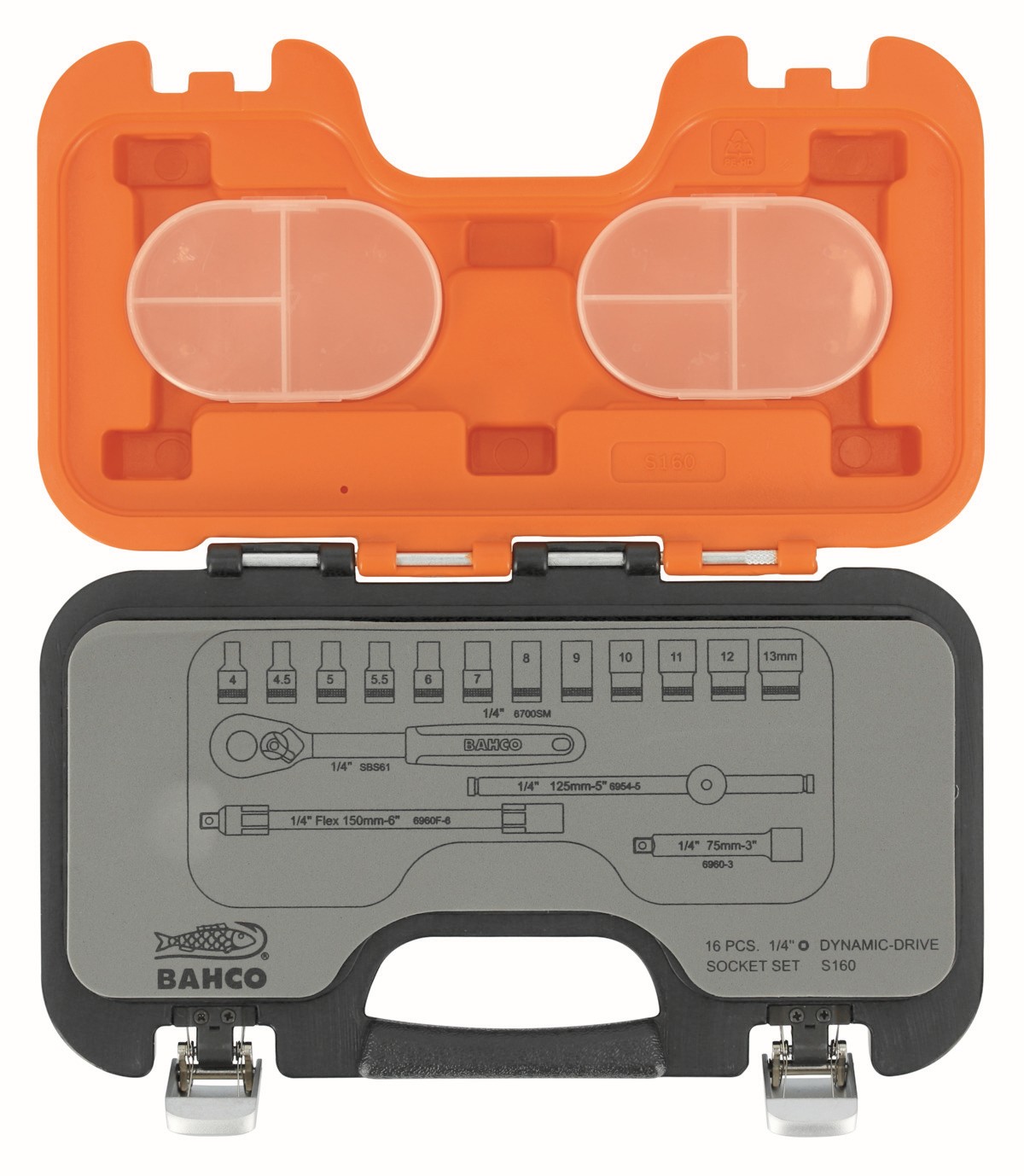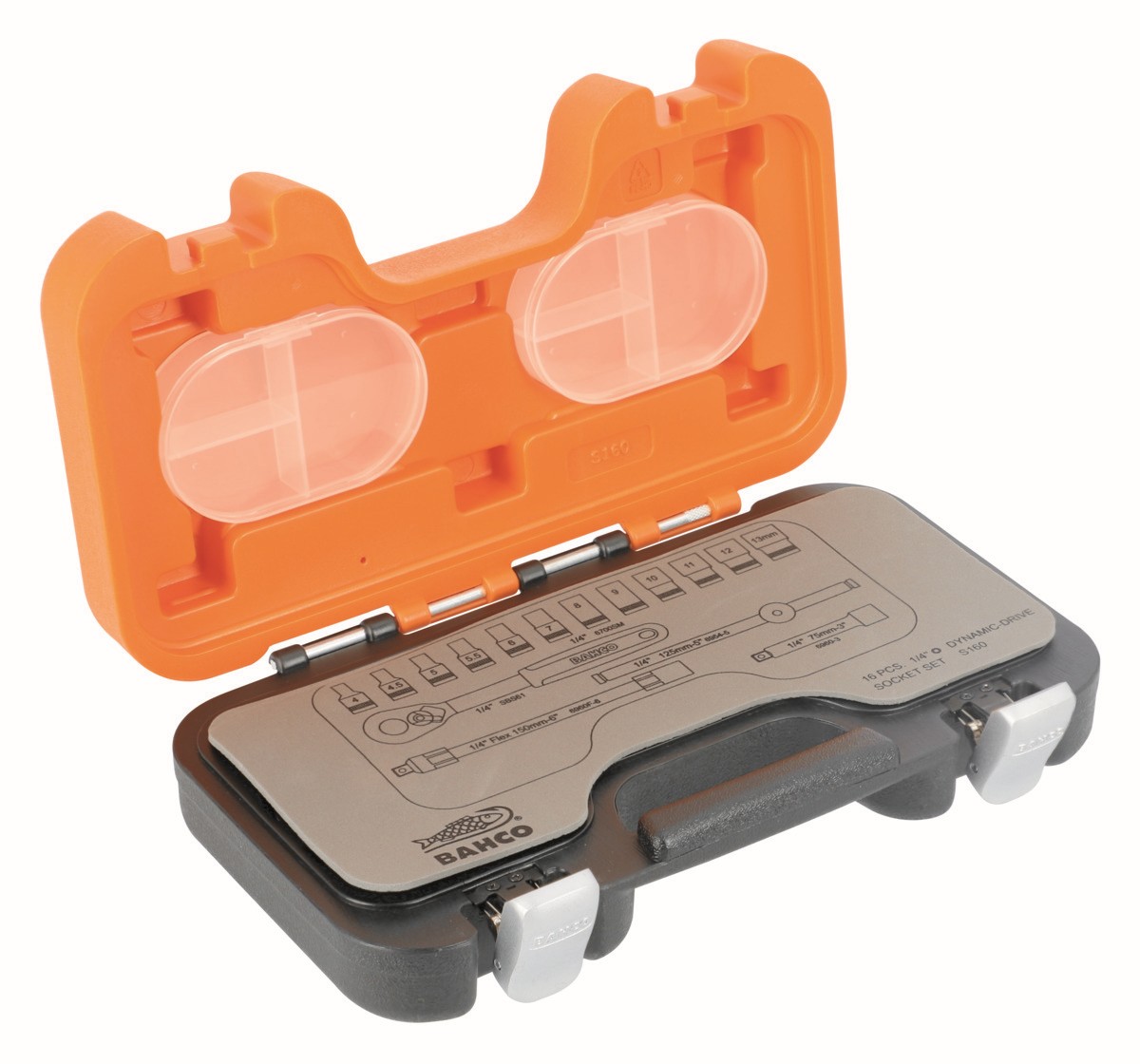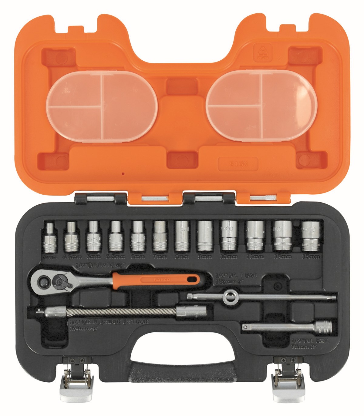 Juego de vasos con cuadrado de 1/4", con perfil hexagonal métrico y carraca | S160 de BAHCO