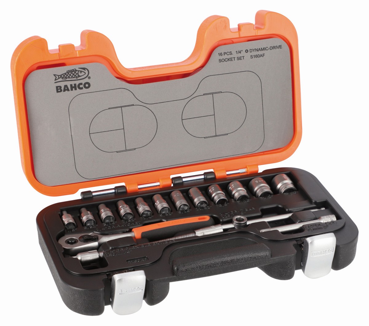 Juego de vasos con cuadrado de 1/4", perfil hexagonal imperial y carraca | S160AF de BAHCO