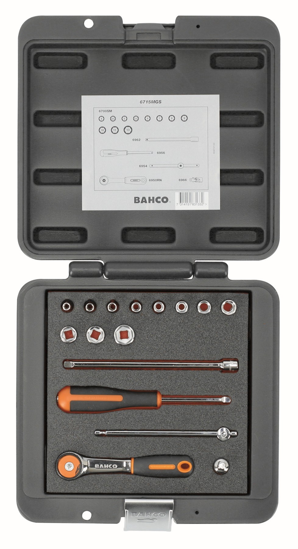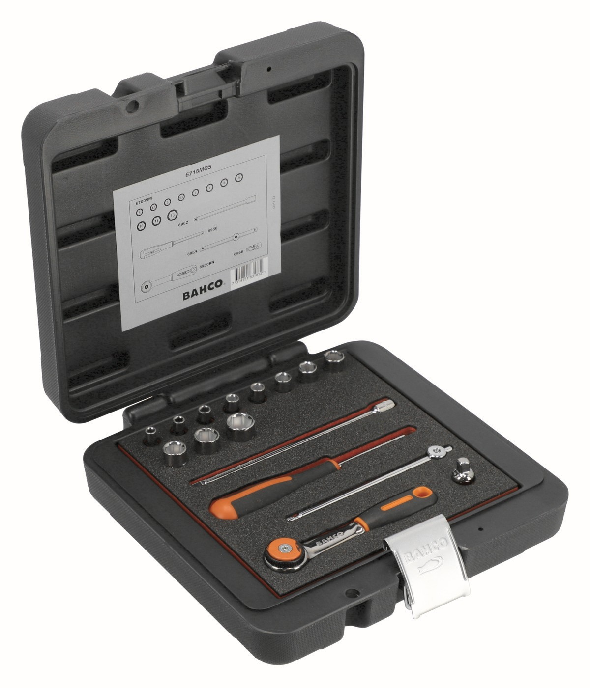 Juego de vasos con cuadrado de 1/4" con perfil hexagonal métrico y juego de carraca con cabeza redonda/alargaderas | 6715MGS de BAHCO