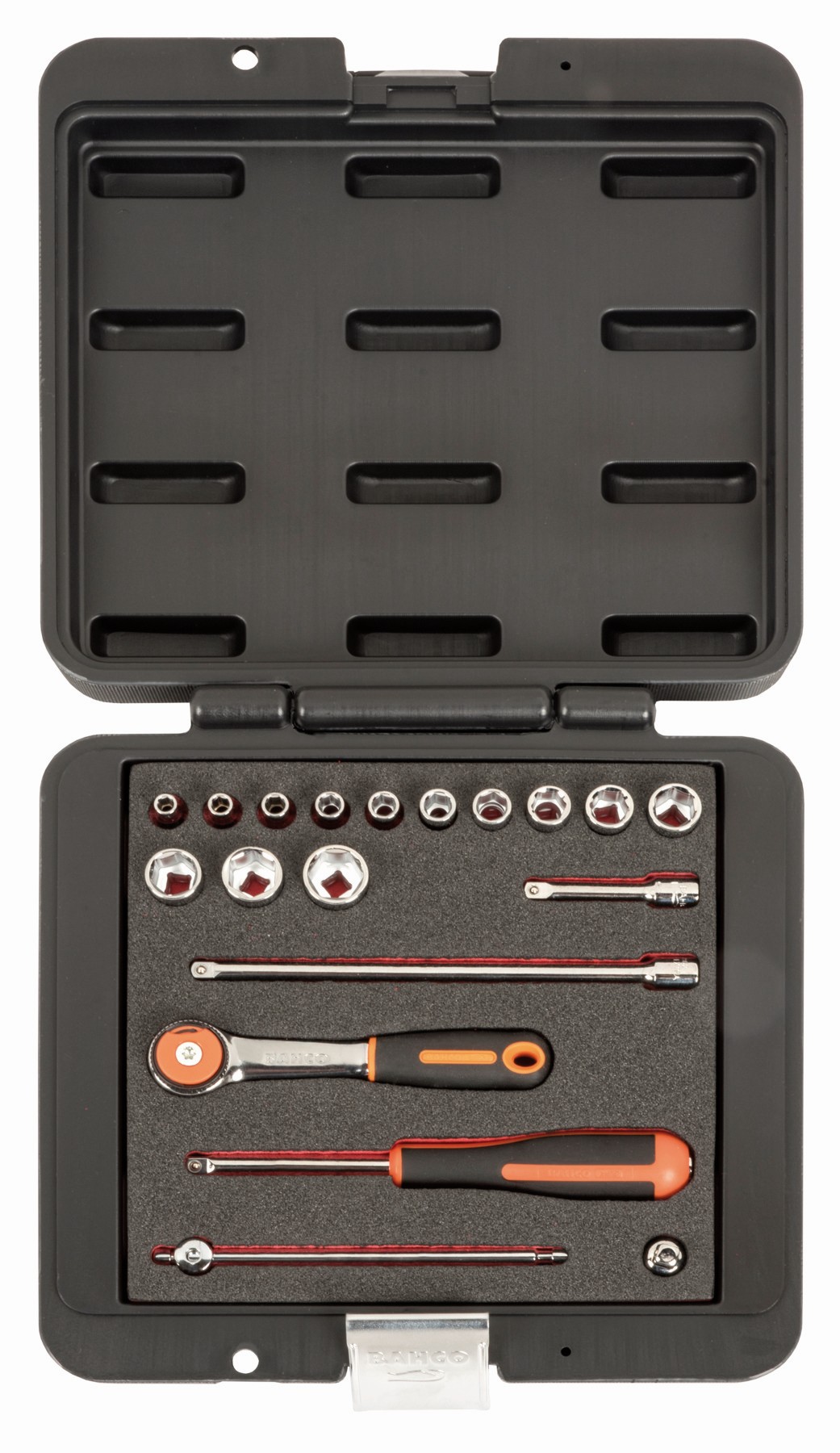 Juego de vasos con cuadrado de 1/4" con perfil hexagonal métrico y juego de carraca con cabeza redonda/mango en T | 6719MHR de BAHCO