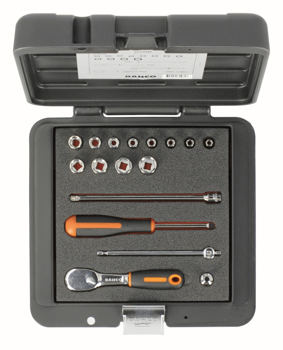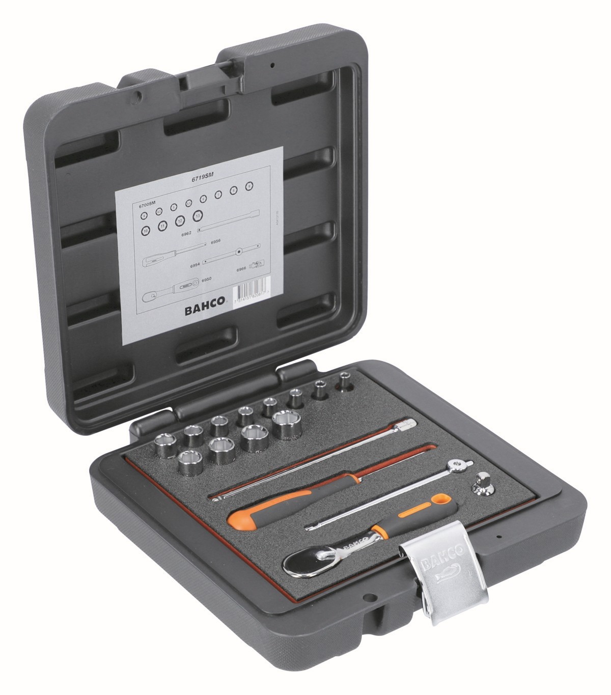 Juego de vasos con cuadrado de 1/4", con perfil hexagonal métrico y carraca con cabeza tipo pera/articulación universal | 6719SM de BAHCO