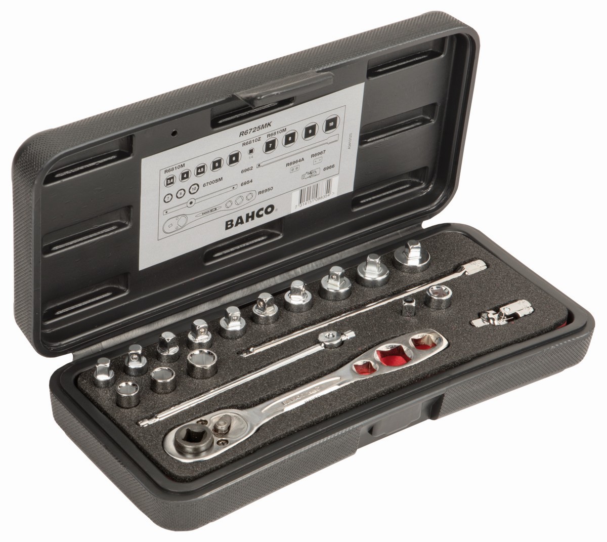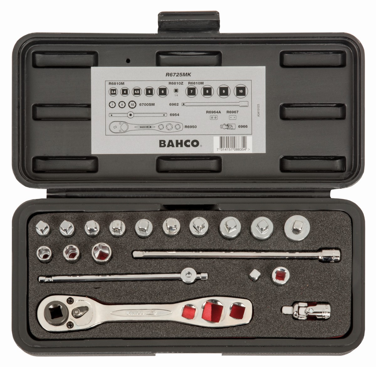 Juego de vasos con cuadrado de 1/4", con perfil bi-hexagonal métrico y carraca para refrigeración | R6725MK de BAHCO