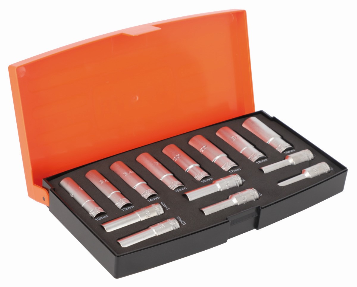 Vasos serie larga de 3/8": 6, 7, 8, 9, 10, 11, 12, 13, 14, 15, 16, 17, 18 y 19 mm.