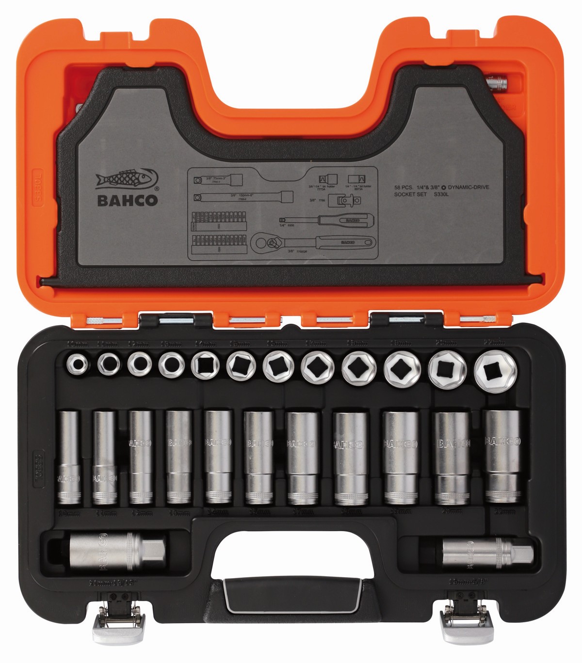 Juego de vasos serie larga con cuadrado de 1/4" y 3/8", con perfil hexagonal métrico y carraca | S330L de BAHCO