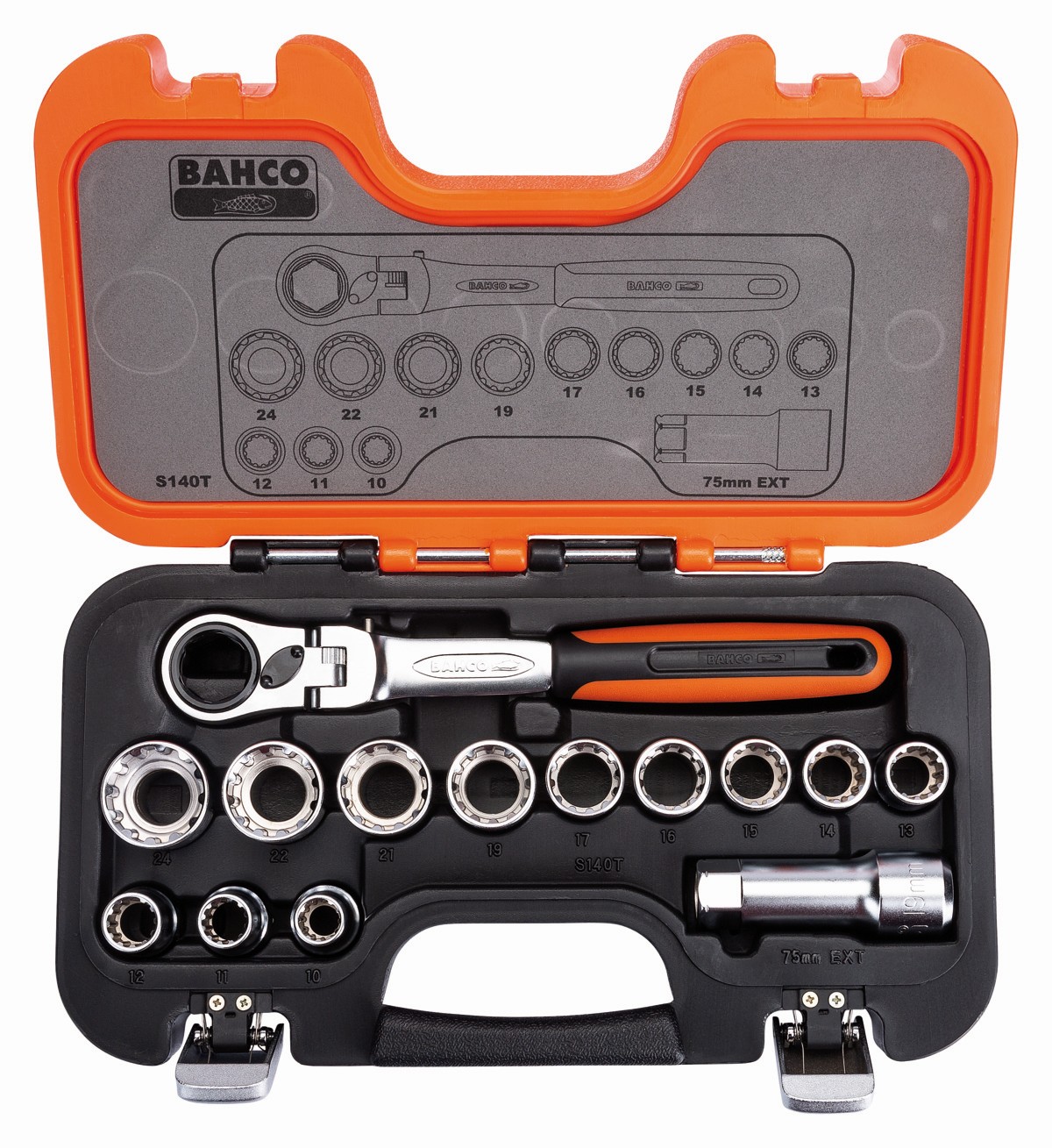 Juego de vasos pasantes con carraca de cabeza flexible/alargaderas | S140T
