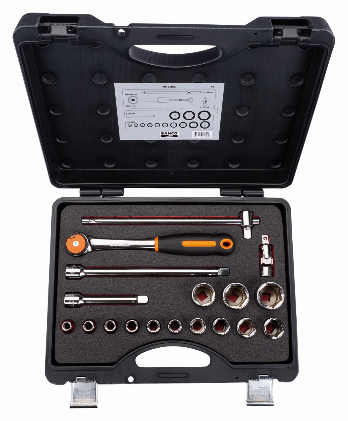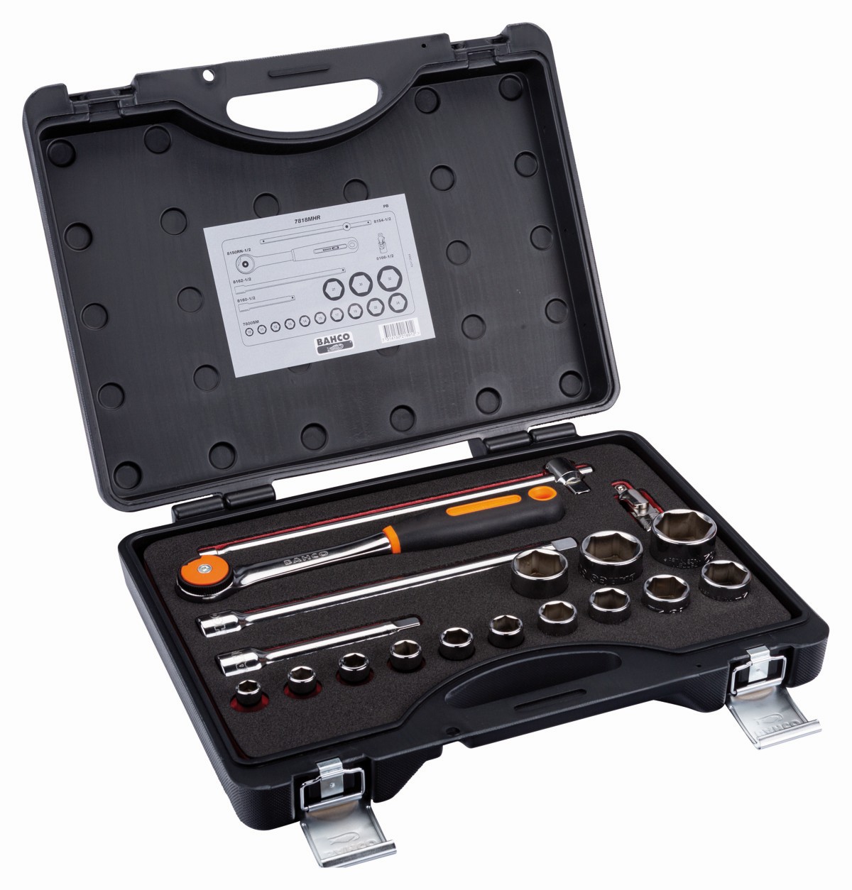 Juego de vasos con cuadrado de 1/2" con perfil hexagonal métrico y juego de carraca con cabeza redonda | 7818MHR de BAHCO