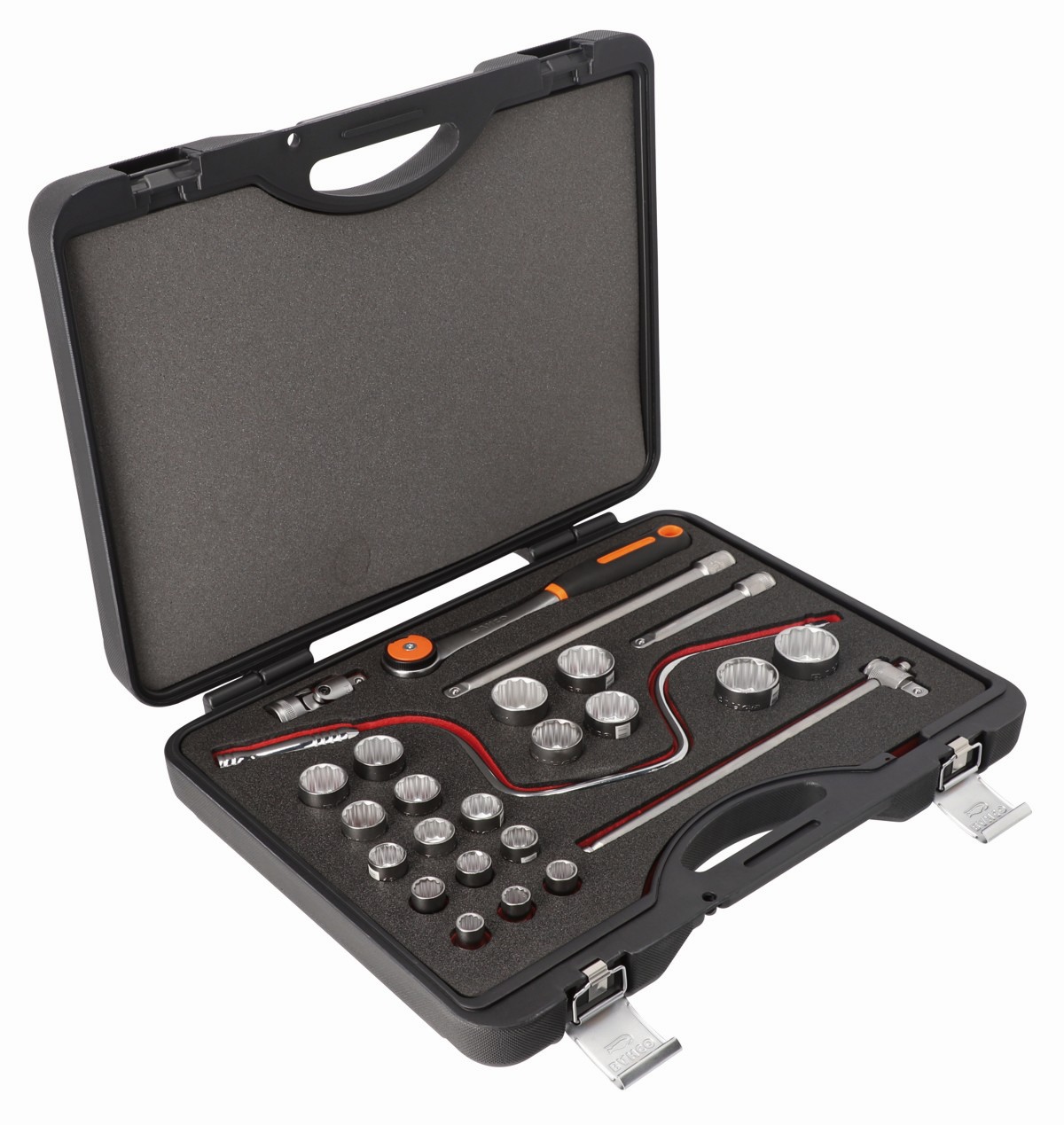 - Vasos de perfil bi-hexagonal métrico con cuadrado de 1/2" (7800DM), 19 piezas de 10, 11, 12, 13, 14, 15, 16, 17, 18, 19, 21, 22, 23, 24, 26, 27, 28, 30 y 32 mm.