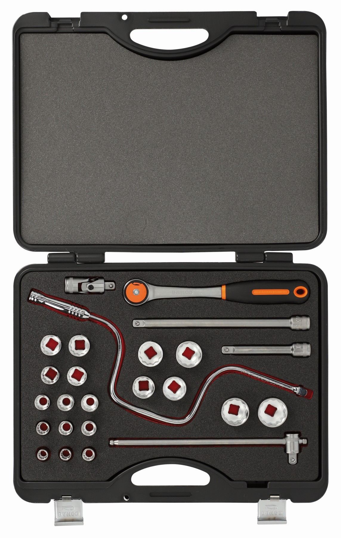 Juego de vasos con cuadrado de 1/2" con perfil bi-hexagonal métrico y juego de carraca con cabeza redonda | 7819DRN de BAHCO