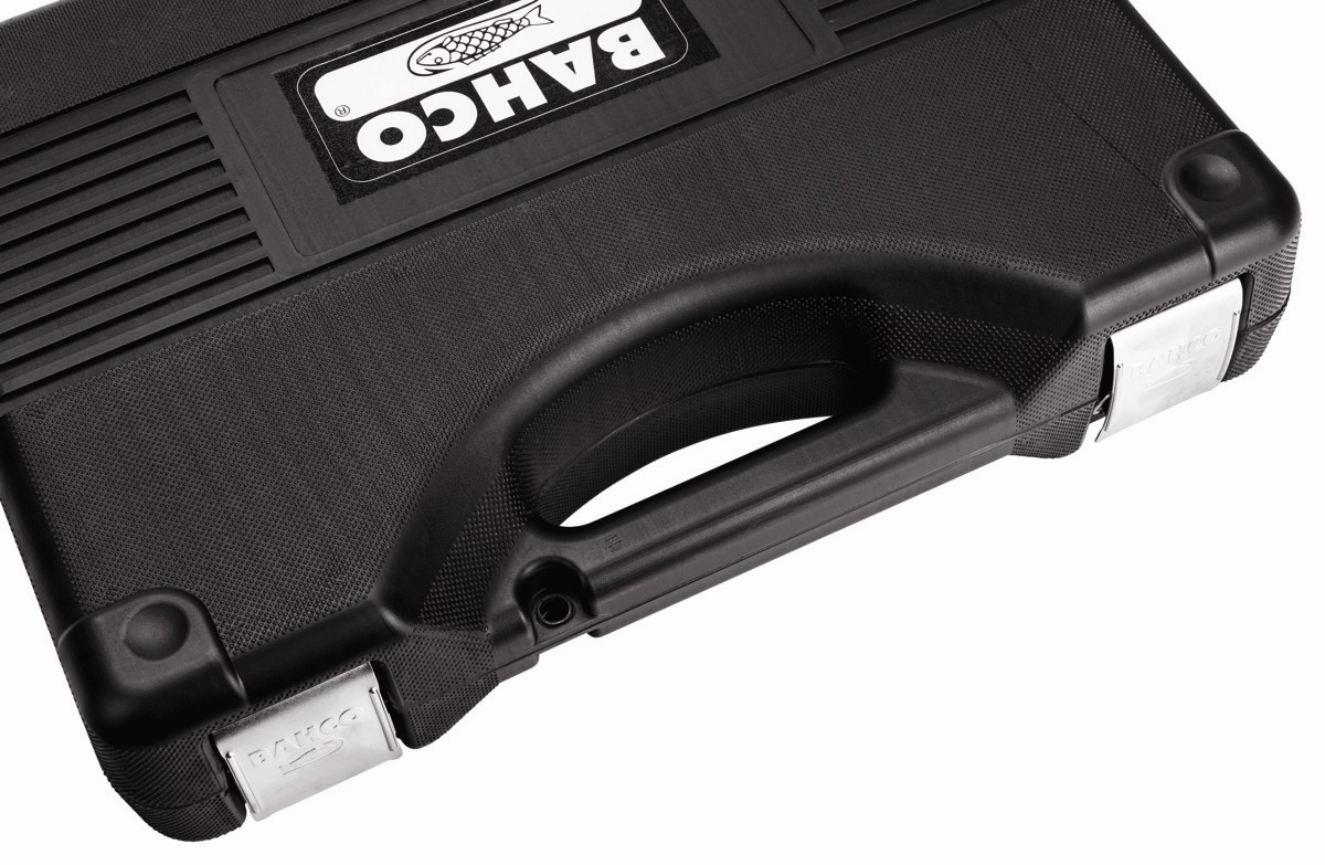- Carraca con mango bi-componente antideslizante y cómodo, con un práctico agujero para colgar y facilitar el almacenamiento.