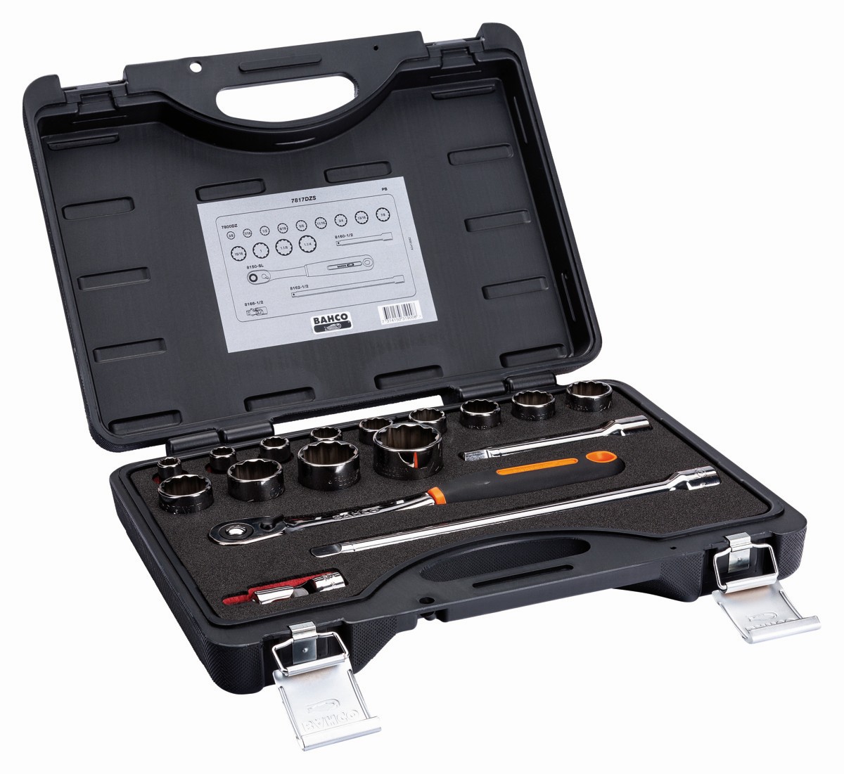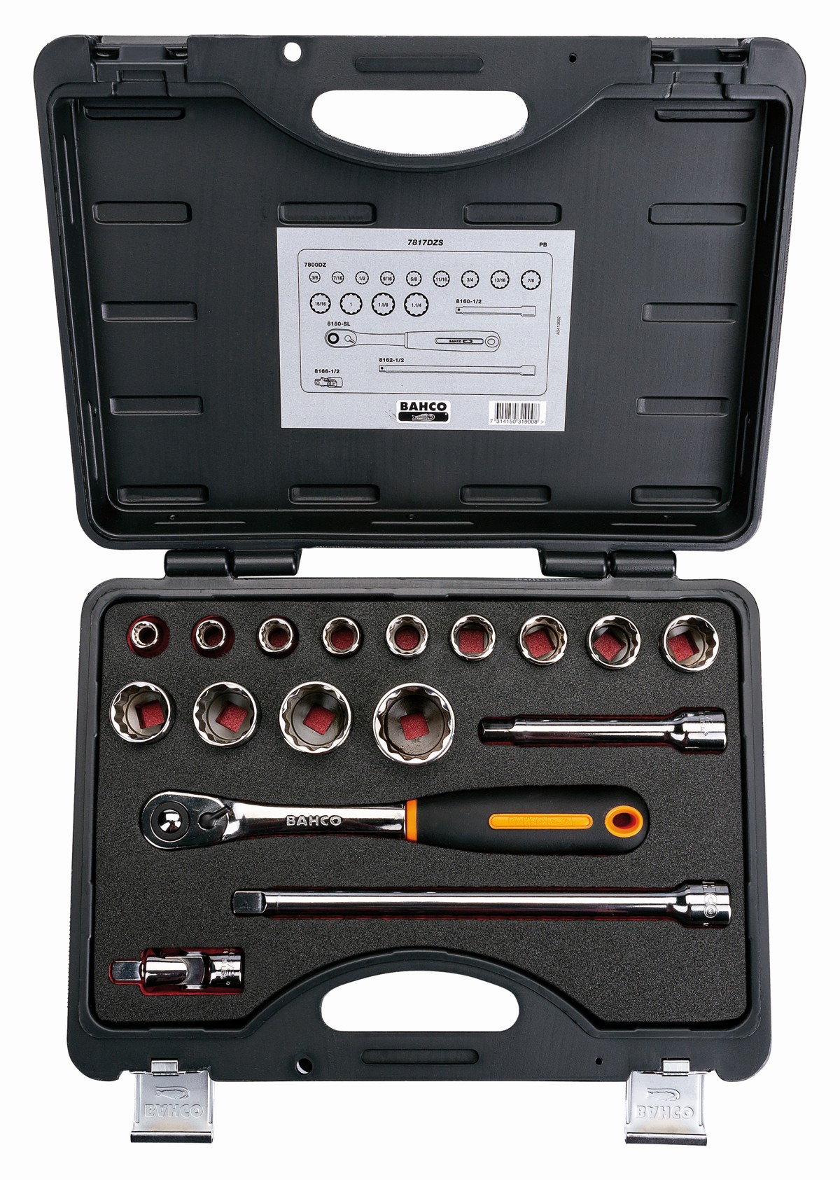 Juego de vasos de 1/2" con perfil bi-hexagonal en pulgadas y carraca de cabeza delgada (16 piezas) | 7817DZS1 de BAHCO