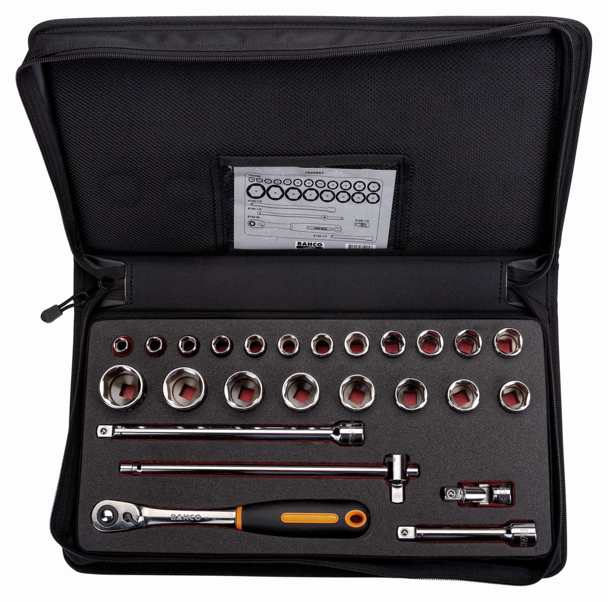 Juego de vasos con cuadrado de 1/2", con perfil hexagonal métrico y carraca de cabeza delgada/articulación universal | 7825SST de BAHCO