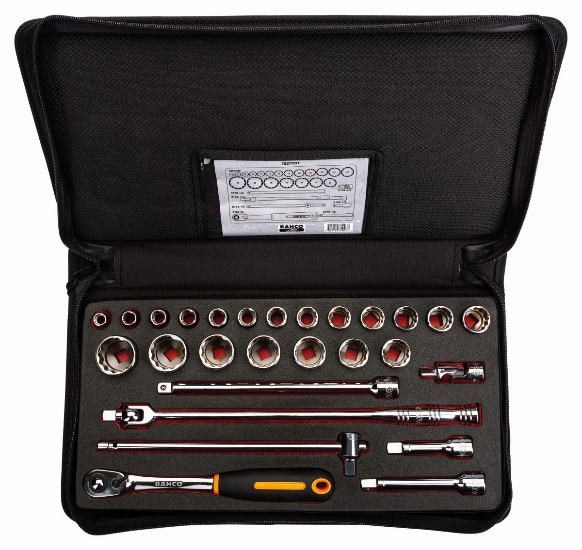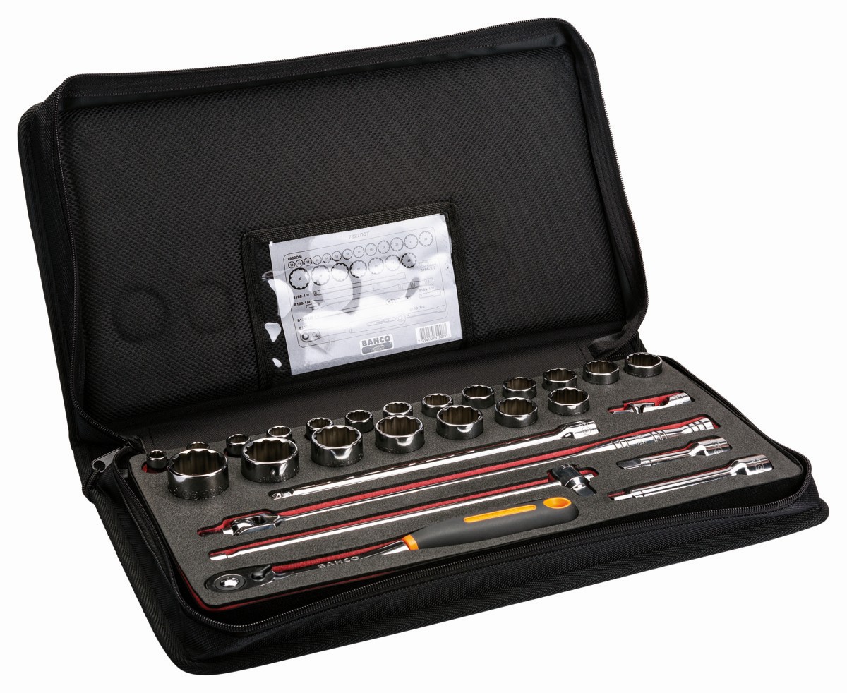 Juego de vasos con cuadrado de 1/2" con perfil bi-hexagonal métrico y carraca de cabeza delgada/mango articulado | 7827DST de BAHCO