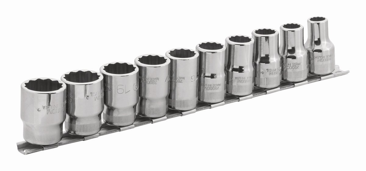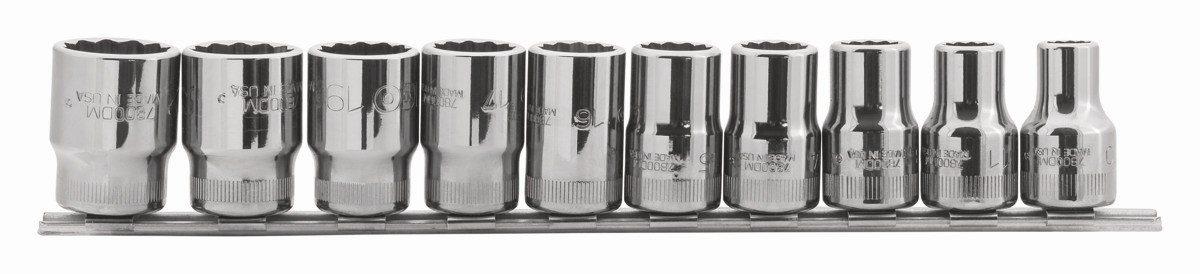 Juego de vasos con cuadrado de 1/2" con perfil bi-hexagonal métrico - 10 unidades/raíl | 7810MB