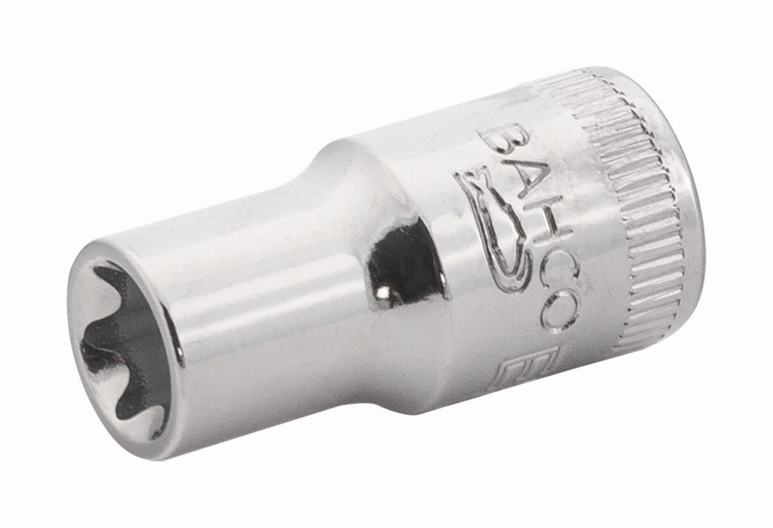 Referencia: SB6700TORX-E8 Variante: SB6700TORX-E8, Profundidad de los rodamientos: 7 mm, Medida hembra TORX: E8, Longitud, mm L: 25 mm, Anchura del vaso: 9,6 mm, Tornillos: M5+M6, Anchura del cuadradillo hembra cuadrado: 12 mm