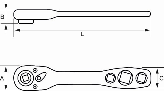 El cabezal de la llave incorpora una palanca para cambiar de dirección fácilmente con una mano.