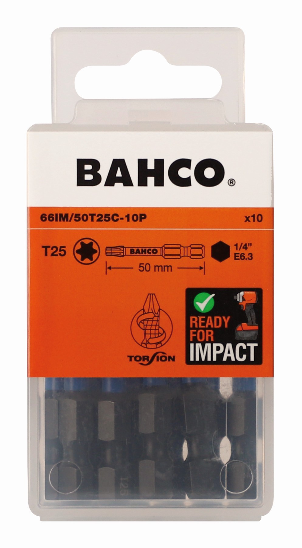 Referencia: 66IM/50T25C-10P Variante: 66IM/50T25C-10P, Número de piezas: 10, Medida punta TORX: T25, Diámetro de la estrella, mm: 4.43 mm, Longitud: 50 mm