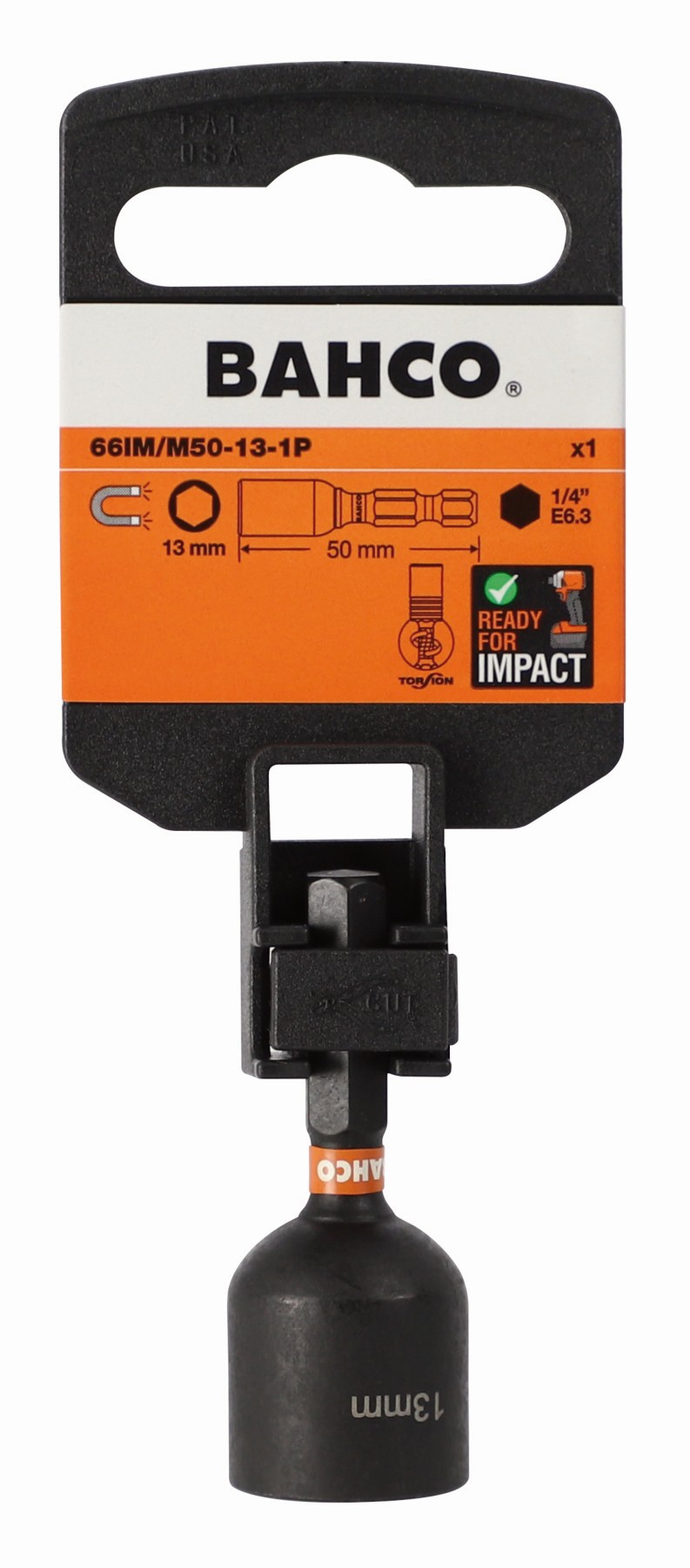 Referencia: 66IM/M50-13-1P Variante: 66IM/M50-13-1P, Número de piezas: 1, Anchura de hembra exagonal, mm: 13 mm, Tamaño hexagonal: 1/4 in, Altura: 18.8x6.0 mm, Longitud: 48 mm