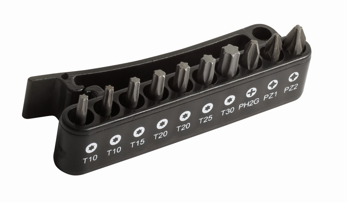 Juego de puntas de 1/4" para tornillos de cabeza Phillips, Pozidriv y TORX® en un soporte de plástico con clip para el cinturón (10 piezas) | 59/S10BC