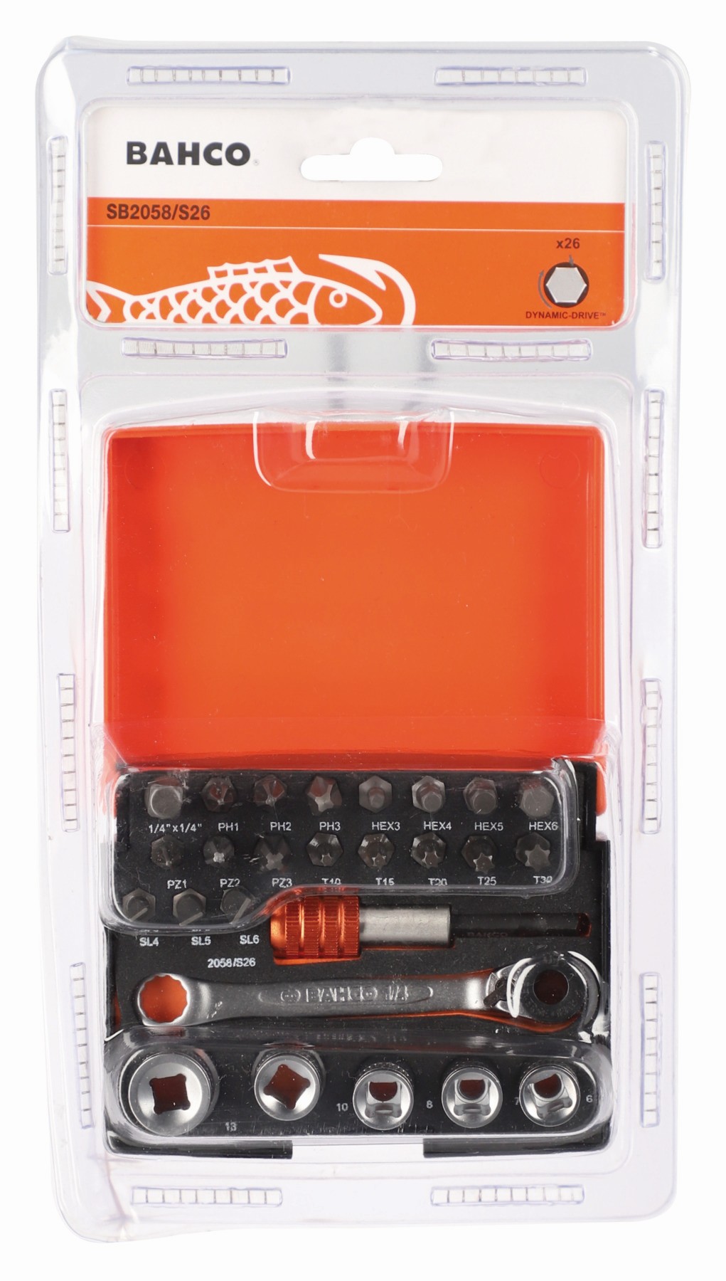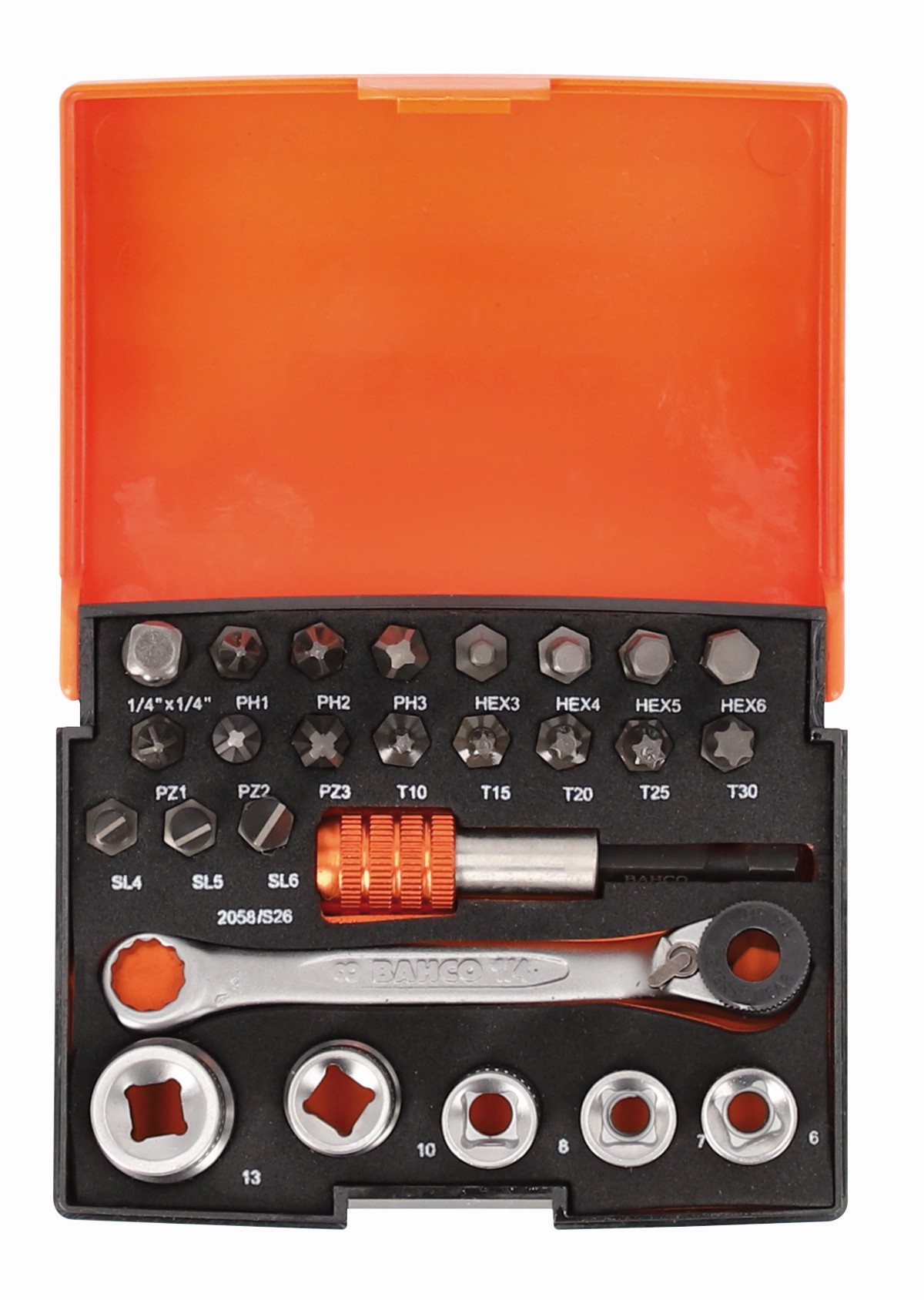 Juego de puntas y vasos pequeños de 1/4" para tornillos ranurados/de cabeza Phillips/ozidriv/TORX®/Hex Paquete al por menor - 26 piezas | SB2058/S26