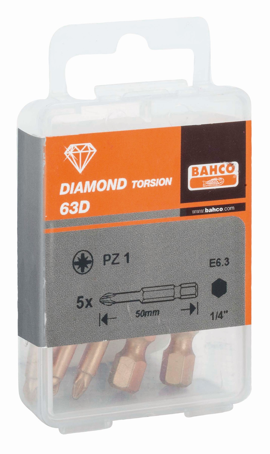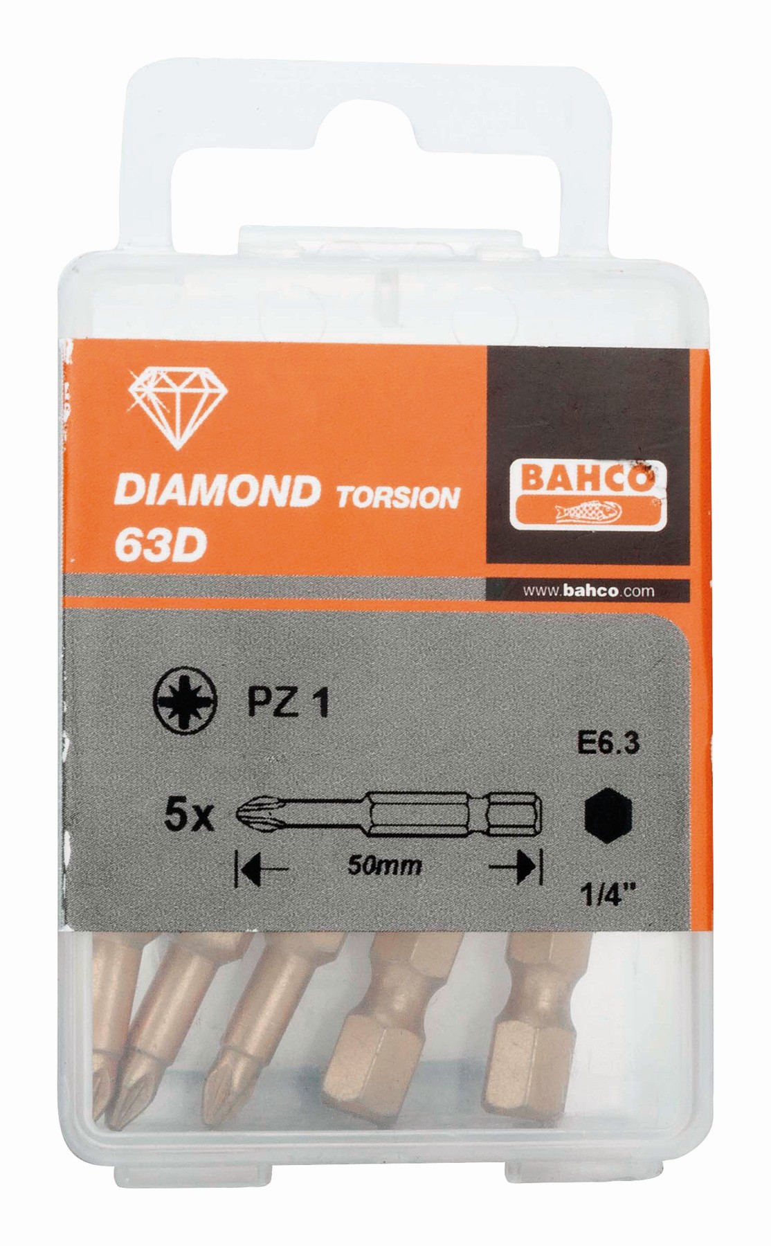 Puntas de diamante de 1/4" para tornillos Pozidriv de 50 mm (5 piezas/caja de plástico) | 63D/50PZ