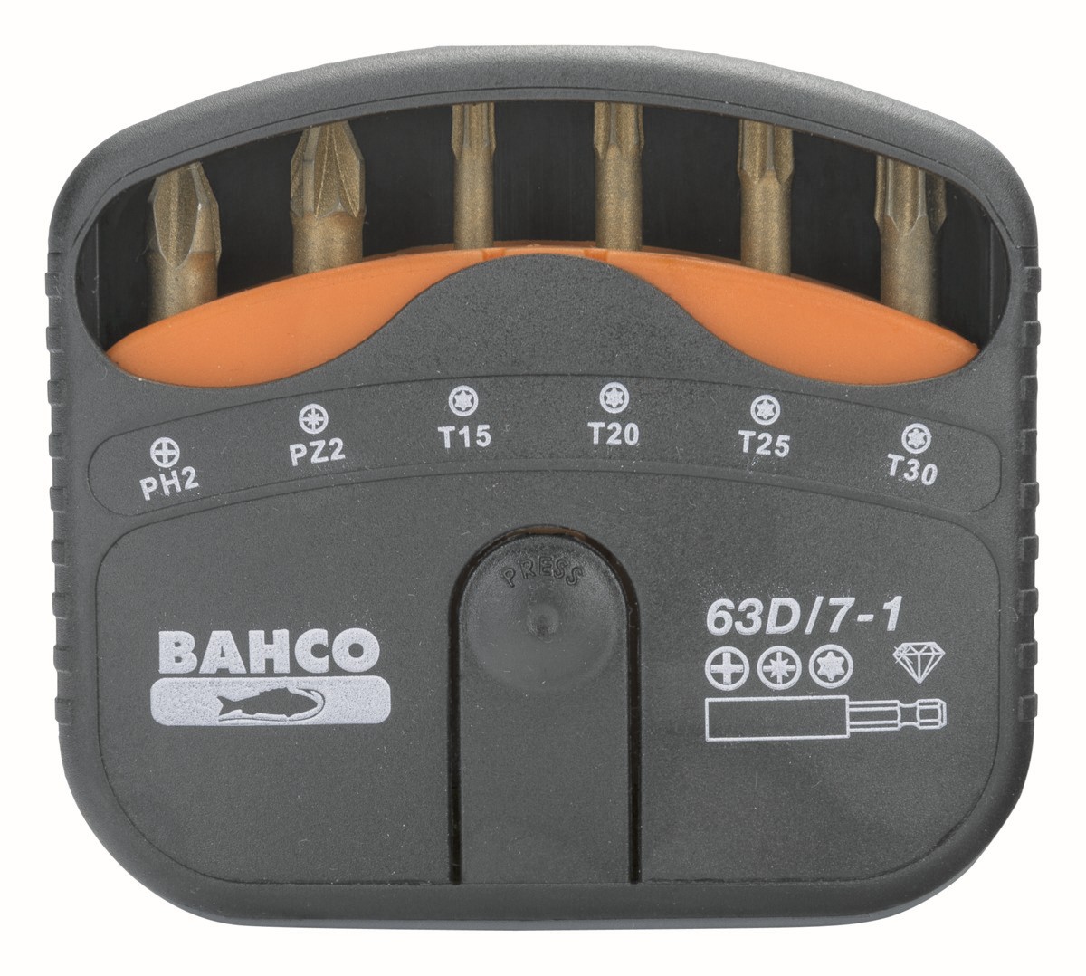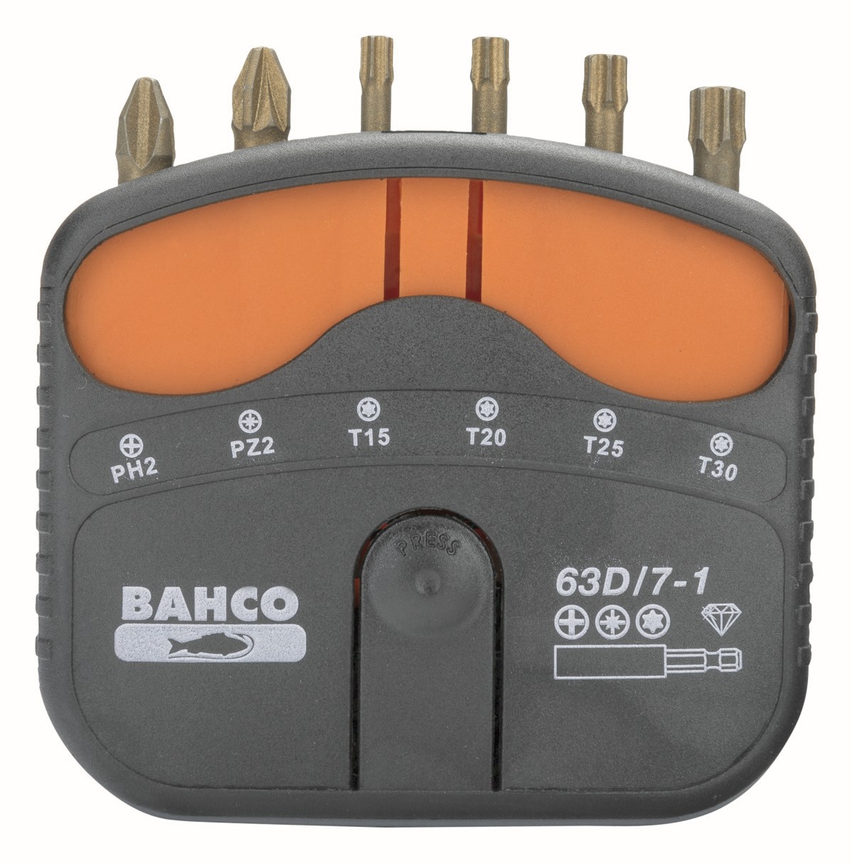 Juego de puntas de diamante de 1/4" con portapuntas para tornillos Phillips, Pozidriv y de cabeza TORX® | 63D/7 de BAHCO