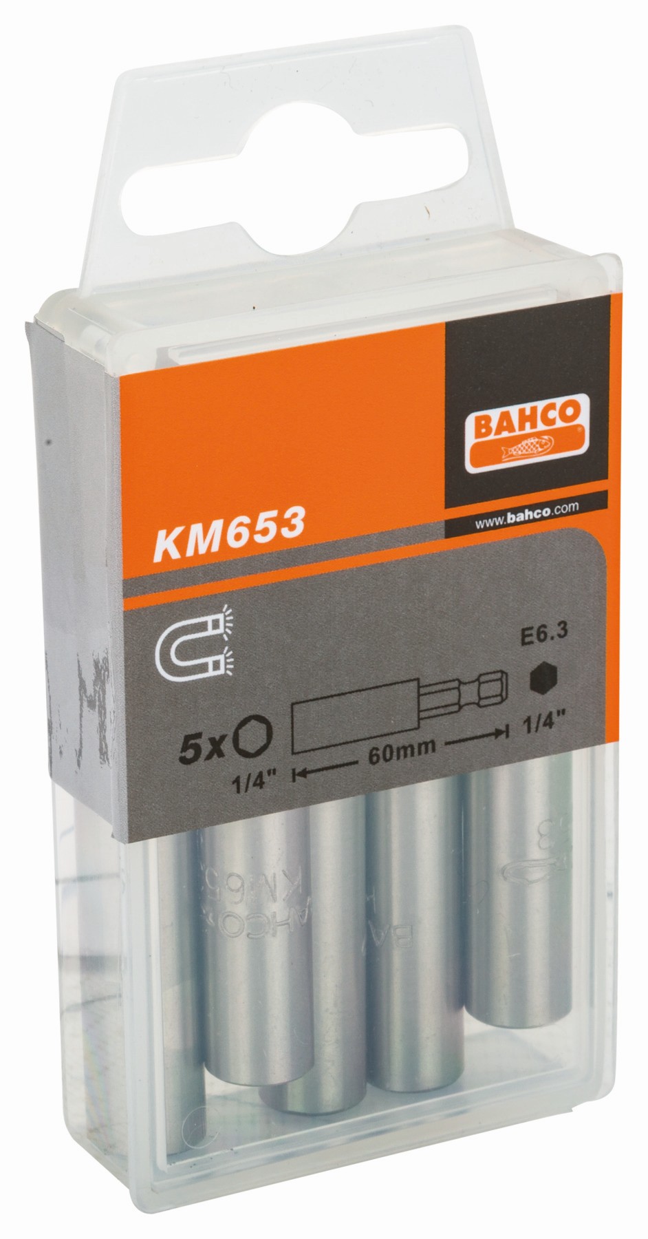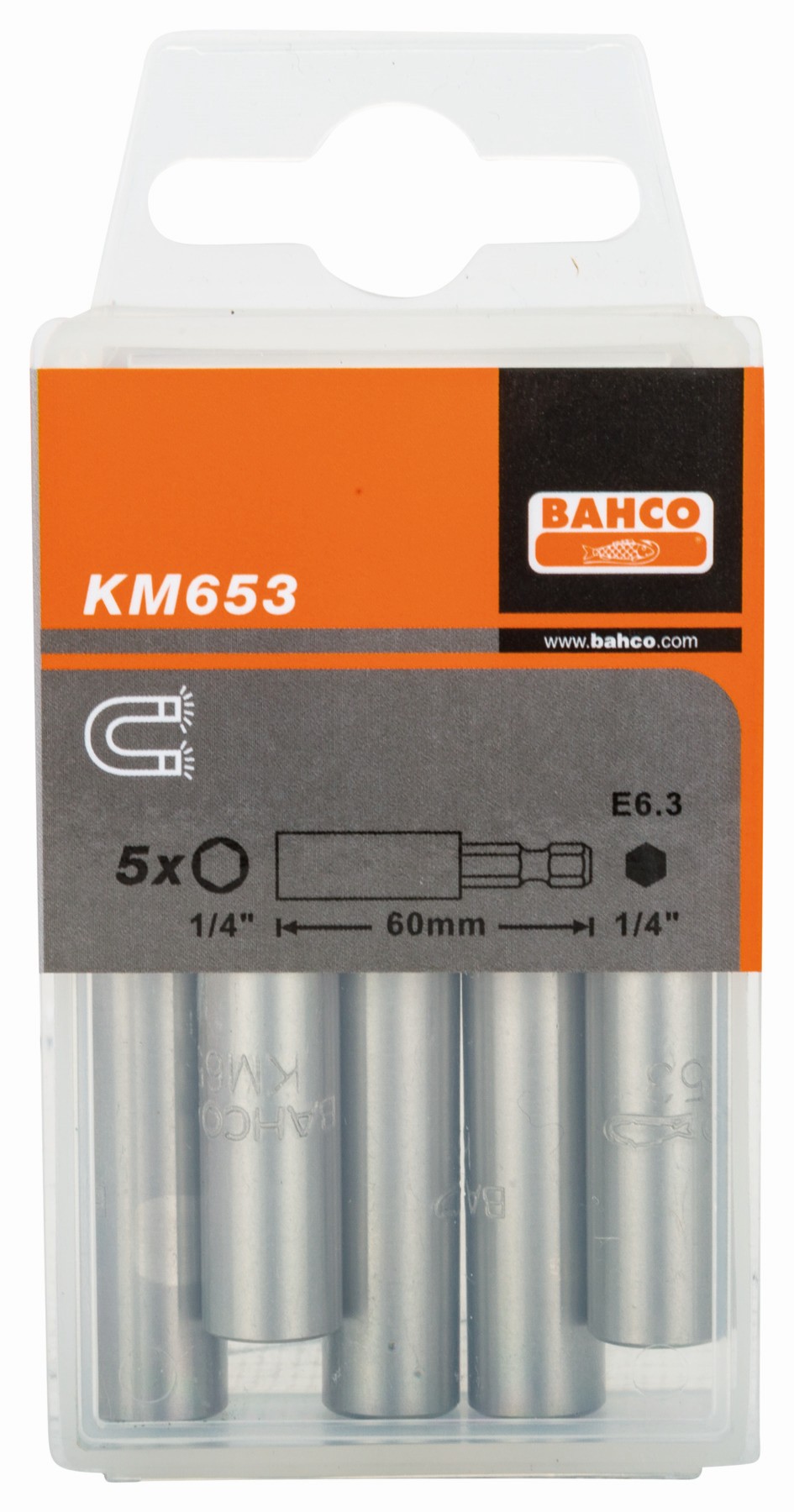 Referencia: KM653-5P Variante: KM653-5P, Número de piezas: 5, Cuadradillo hexagonal hembra, pulg: 1/4 in, Diámetro del eje: 10 mm, Longitud: 60 mm, Tamaño hexagonal: 1/4 in