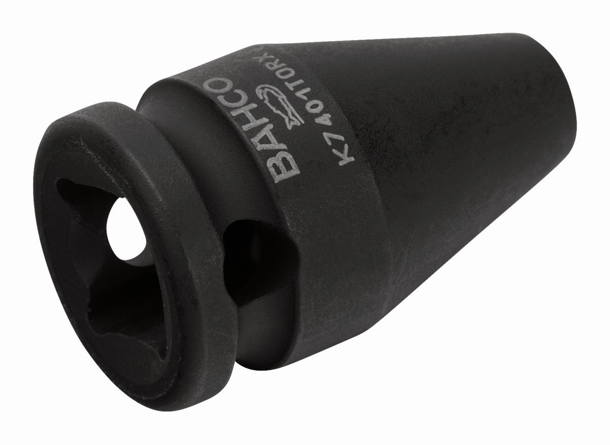 Referencia: K7401TORX-E10 Variante: K7401TORX-E10, Medida hembra TORX: E10, Longitud, mm L: 32 mm, Profundidad de los rodamientos: 7,5 mm, Anchura del vaso: 12,5 mm, Anchura del cuadradillo cuadrado: 19 mm, Para tornillos: M6, M8, Muelle de pinzas Booster, mm: K560F-2
