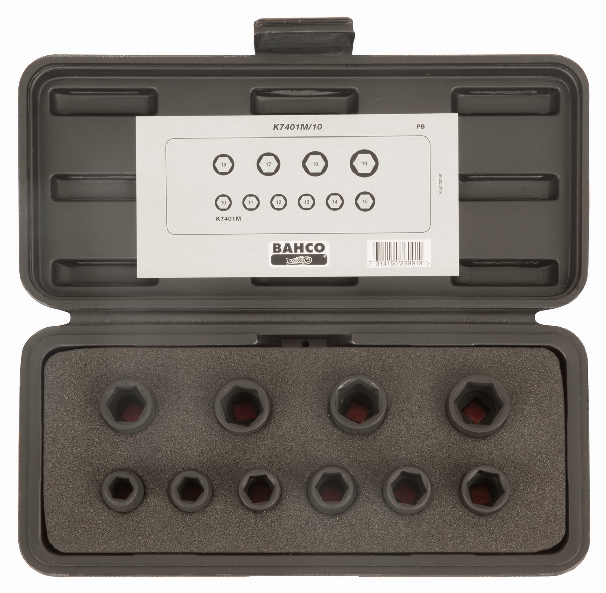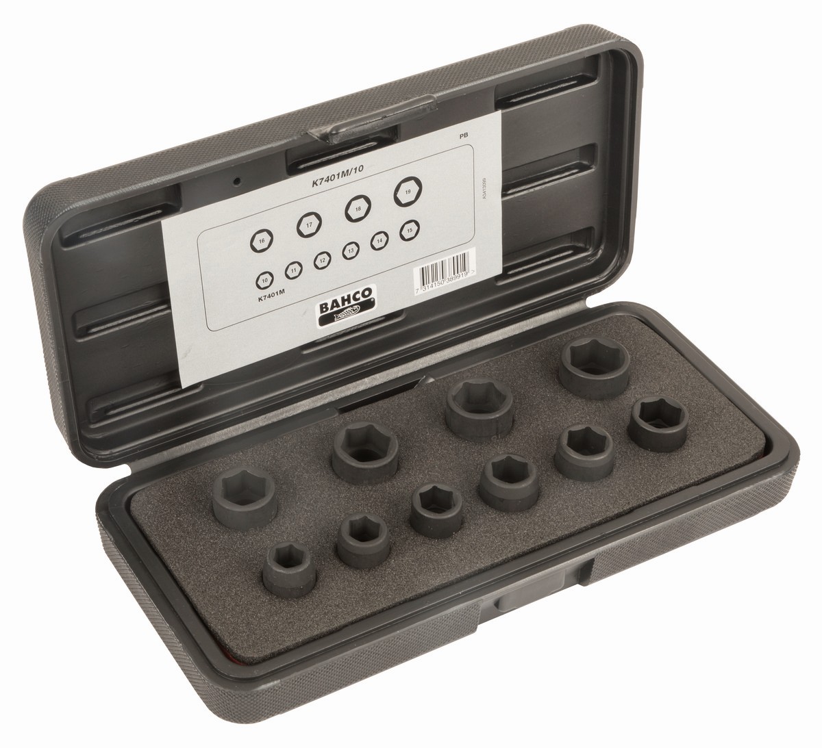 Juego de10 vasos de impacto hexagonales métricos (10, 11, 12, 13, 14, 15, 16, 17, 18 y 19 mm).