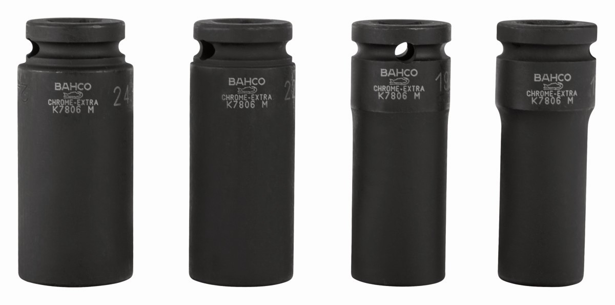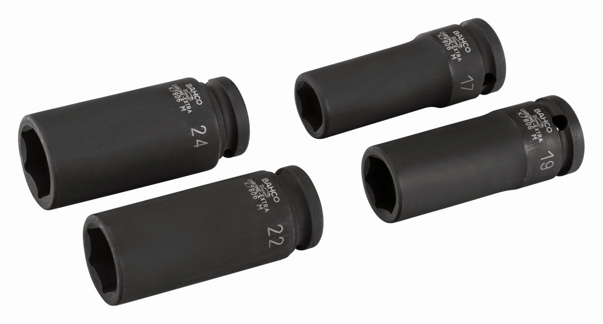 Juego de vasos de impacto de serie larga, fosfatados, con cuadrado de 1/2" y con perfil hexagonal métrico: 4 piezas | K7806M/S4 de BAHCO