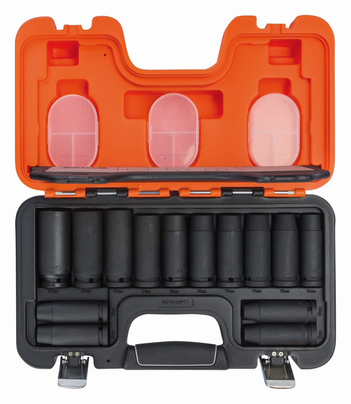 Juego de vasos de impacto de serie larga fosfatados con cuadrado de 1/2" y con perfil hexagonal métrico: 14 piezas | DD/S14