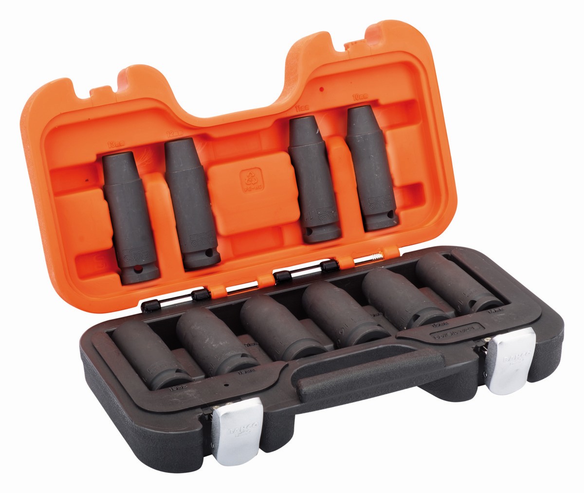 Juego de vasos de impacto de serie larga fosfatados, con cuadrado de 1/2" y con perfil hexagonal métrico: 10 piezas | DD/ de BAHCO