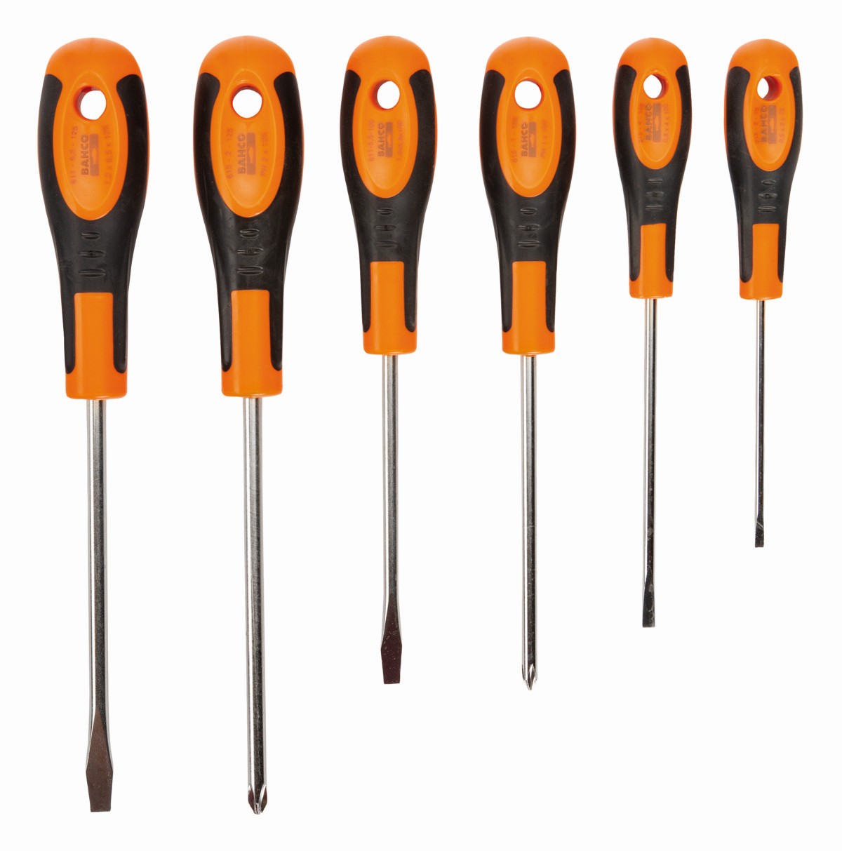 Juego de destornilladores ranurados y Phillips con mango de goma, 5,5-6,5 mm/3-4 mm/PH1-PH2: 6 piezas | 606-6 de BAHCO