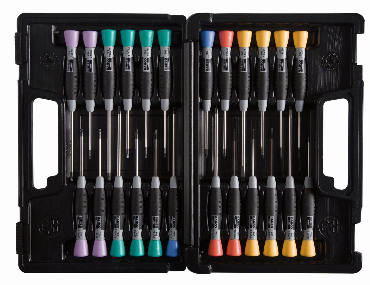 Juego de destornilladores hexagonales de bola y de precisión ranurados/Phillips/Pozidriv/TORX®/hexagonales: 24 piezas | 706-5 de BAHCO