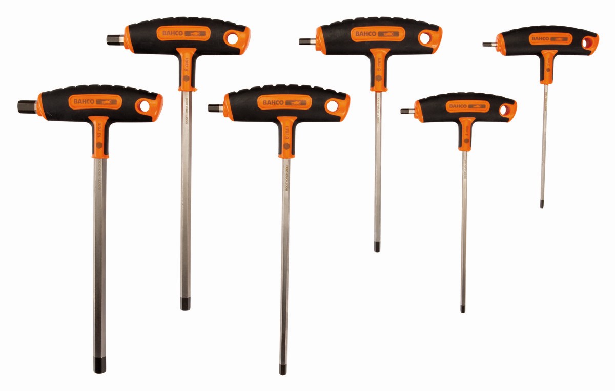 Juego de destornilladores mango en T (6 piezas) para tornillos hexagonales.