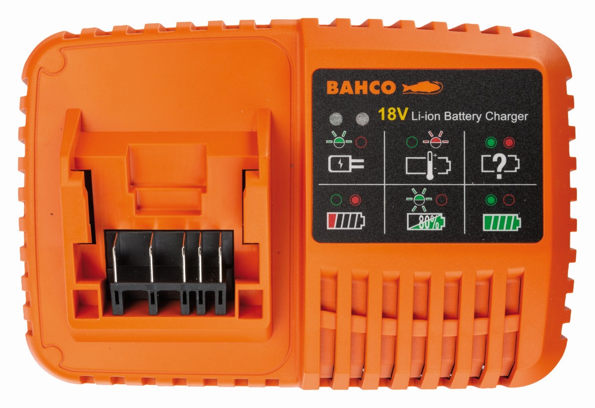 Este cargador es compatible con todas las baterías de Bahco de 18 V