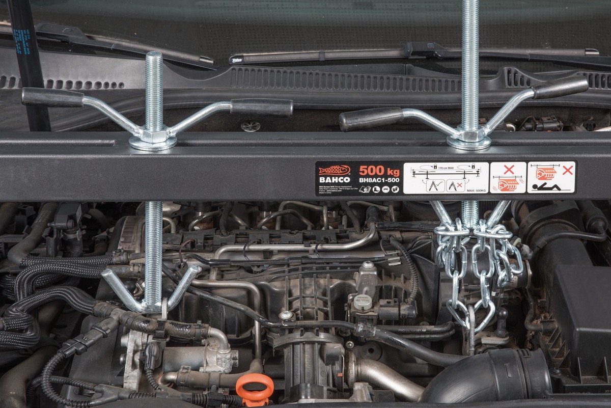 Barra de soporte del motor que eleva y desplaza el motor del compartimento del motor de forma sencilla