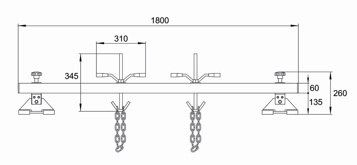 Variante: BH8AC1-500, Capacidad máxima: 500 kg, Dimensiones: 150 x 165 x 1800 mm, Longitud: 1800 mm