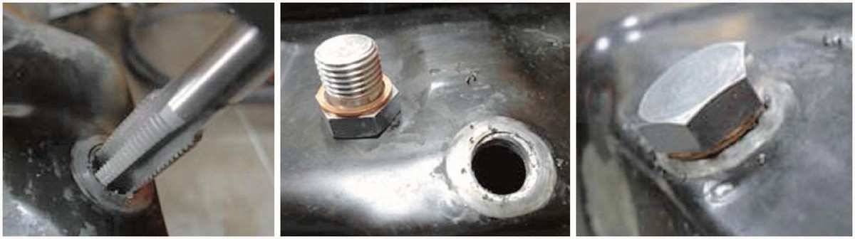 Proporciona una forma sencilla y rápida de restaurar roscas dañadas del drenaje de aceite, haciendo un nuevo agujero e instalando un nuevo tapón