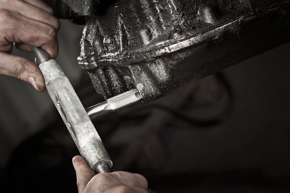 Use el macho para agrandar la rosca dañada y crear un nuevo perfil, a continuación, instale el nuevo tapón