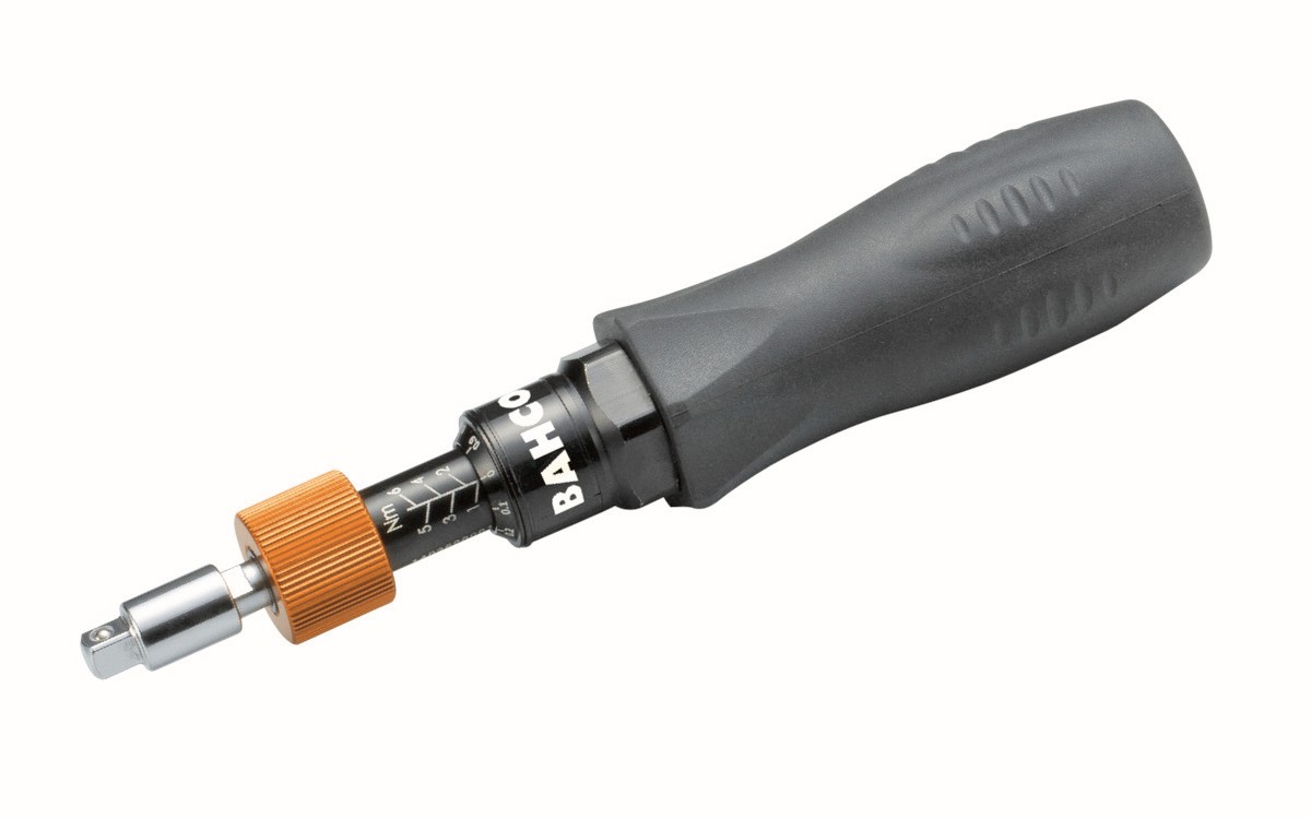 Llave dinamométrica calibrada y ajustable (1-6 Nm) que abarca la mayoría de los pares de apriete habituales