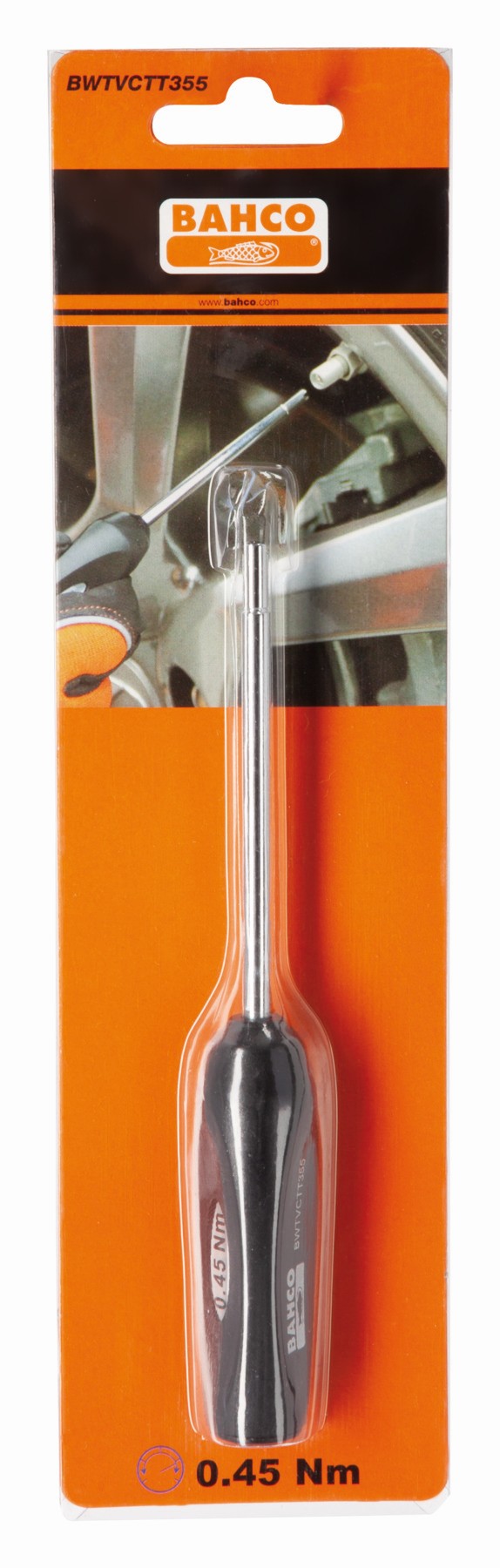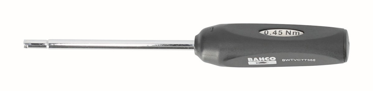 Diseñada específicamente para extraer e instalar de forma precisa obuses de válvulas. La herramienta está preajustada con 0,45 Nm e impide aplicar un par de apriete excesivo o insuficiente en las válvulas con sensores del TPMS