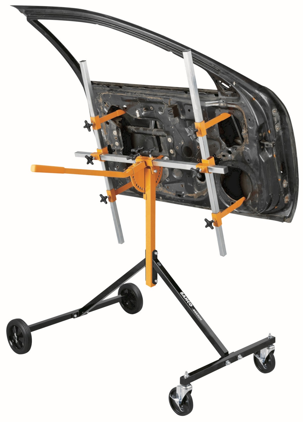Soporte para carrocería en talleres que permite soportar distintas piezas del vehículo, tales como las puertas, el capó, etc.