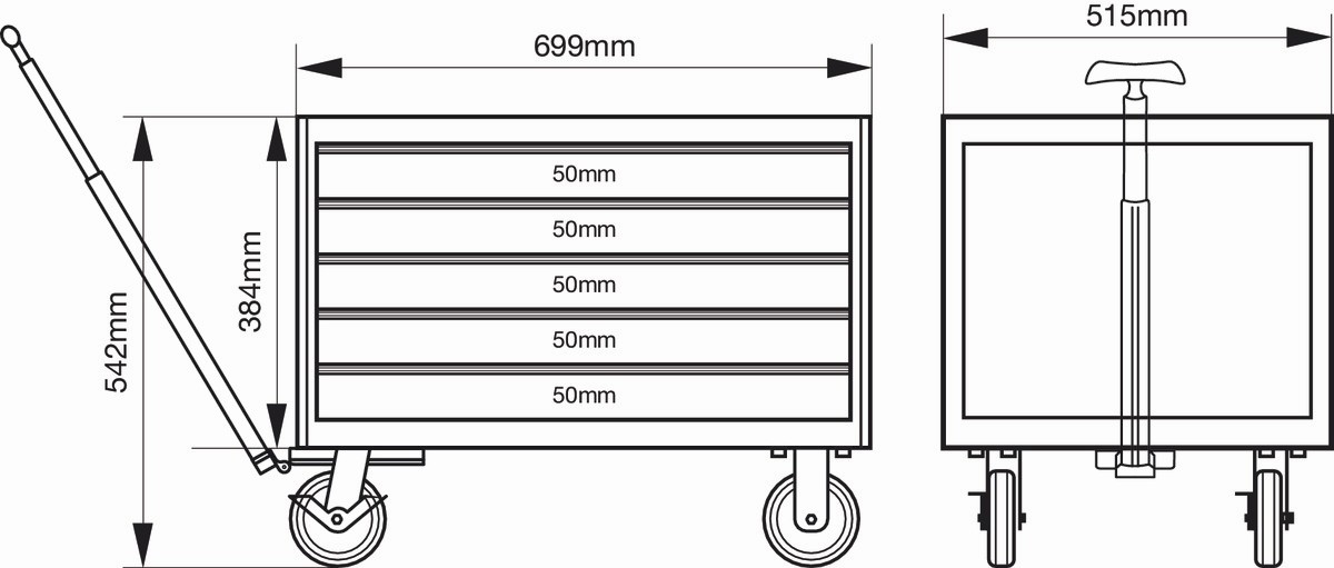Referencia: 1482K5W Variante: 1482K5W, Número de cajones: 5, Dimensión del carro: 542 x 515 x 699 mm, Capacidad de carga del carro, kg: 400 kg, Longitud del cajón, mm: 543 mm, Anchura del cajón, mm: 445 mm, Capacidad de carga de cajón, kg: 30 kg, Color RAL: 2009