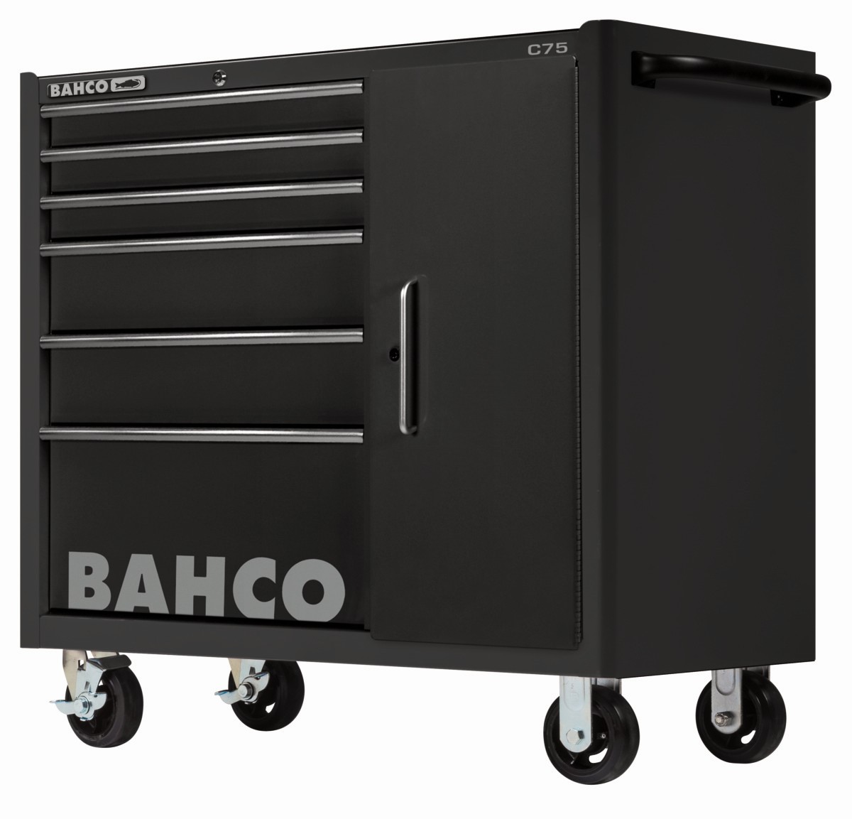 Referencia: 1475KXL6CBLACK Variante: 1475KXL6CBLACK, Longitud del cajón, mm: 543 mm, Anchura del cajón, mm: 445 mm, Color RAL: 9005, Capacidad de carga del carro, kg: 1100 kg, Capacidad de carga de cajón, kg: 30 kg, Altura de la rueda, mm: 150 mm, Anchura de la rueda, mm: 50 mm, Dimensión del carro: 986 x 501 x 1100 mm, Número de cajones: 6