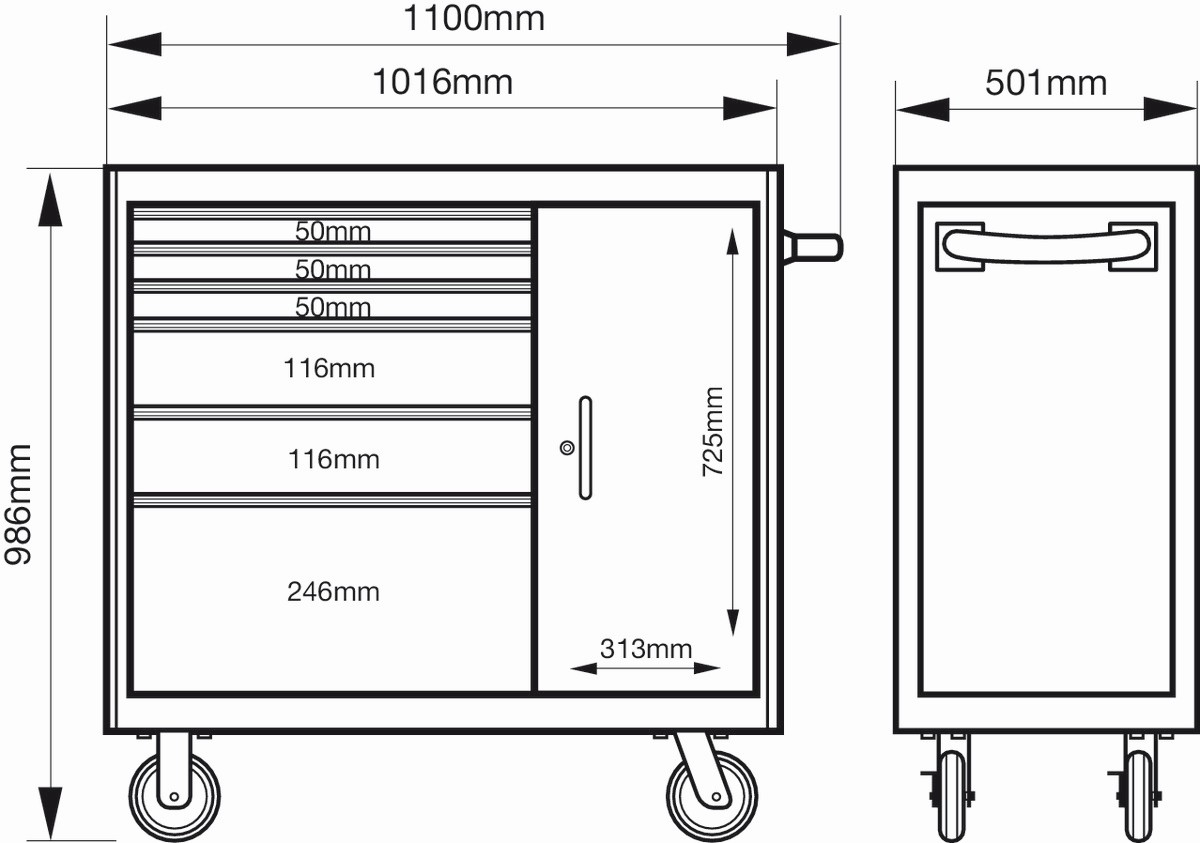 Carros con 6 cajones con una capacidad extragrande y un armario.