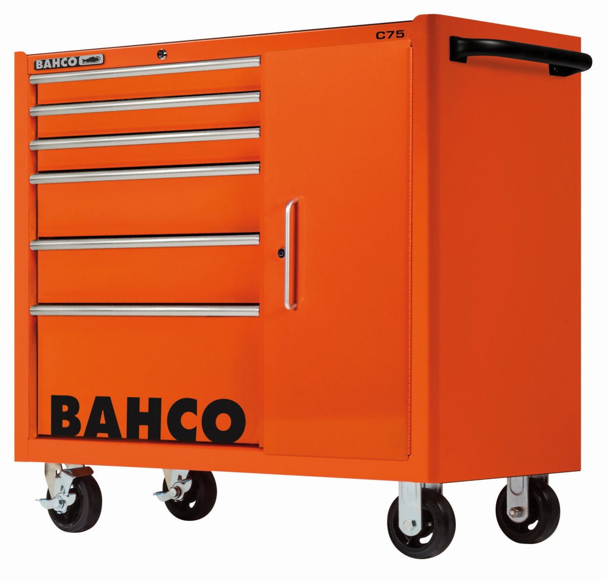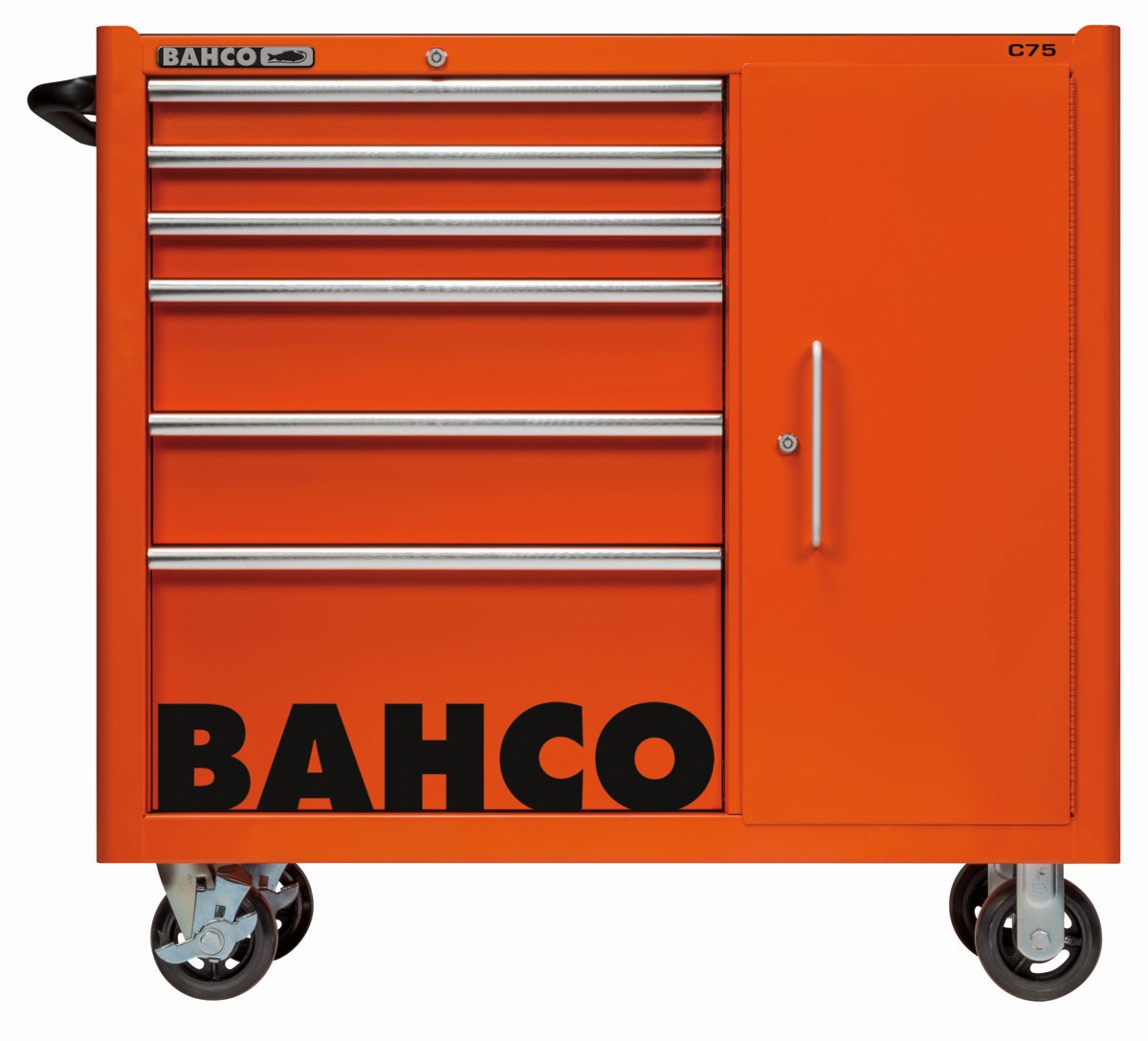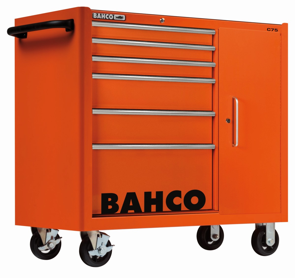 Referencia: 1475KXL6C Variante: 1475KXL6C, Longitud del cajón, mm: 543 mm, Anchura del cajón, mm: 445 mm, Color RAL: 2009, Capacidad de carga del carro, kg: 1100 kg, Capacidad de carga de cajón, kg: 30 kg, Altura de la rueda, mm: 150 mm, Anchura de la rueda, mm: 50 mm, Dimensión del carro: 986 x 501 x 1100 mm, Número de cajones: 6