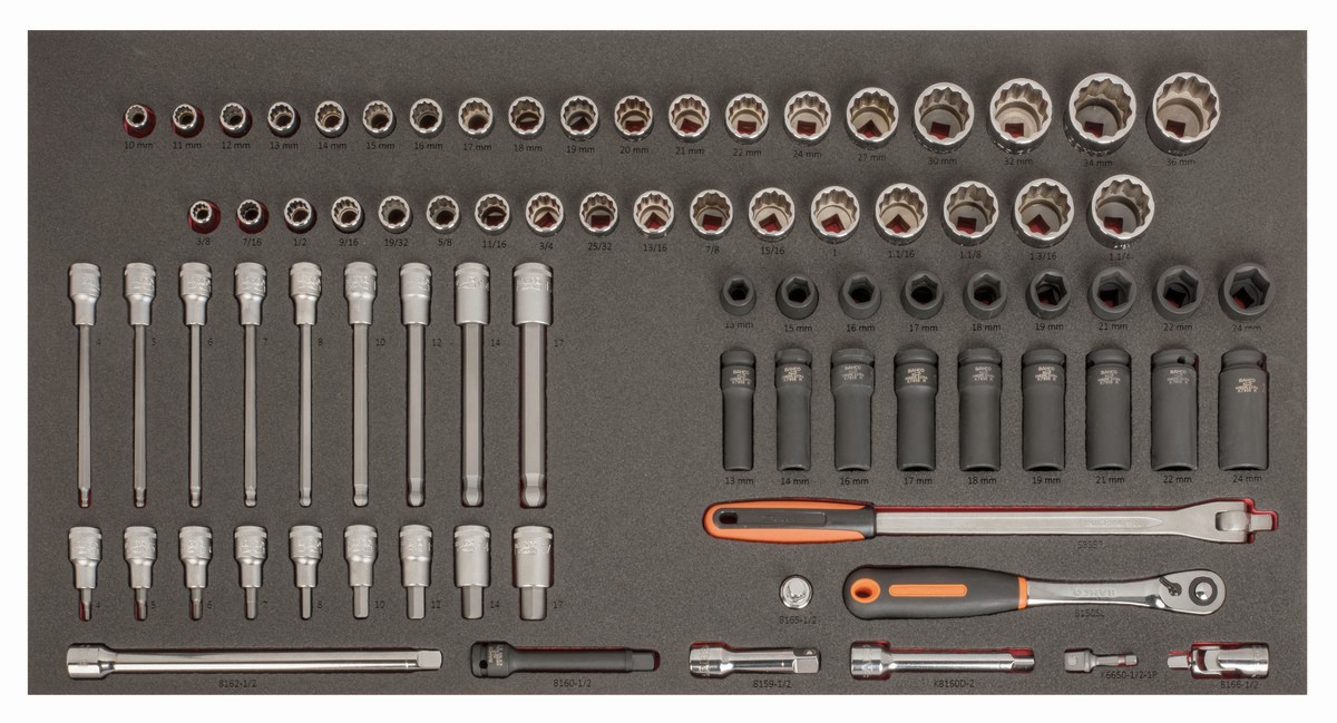Bandeja de foam para carro de 40" con juegos de vasos métricos y en pulgadas de 1/2" (76 piezas) | FF1B02LM de BAHCO