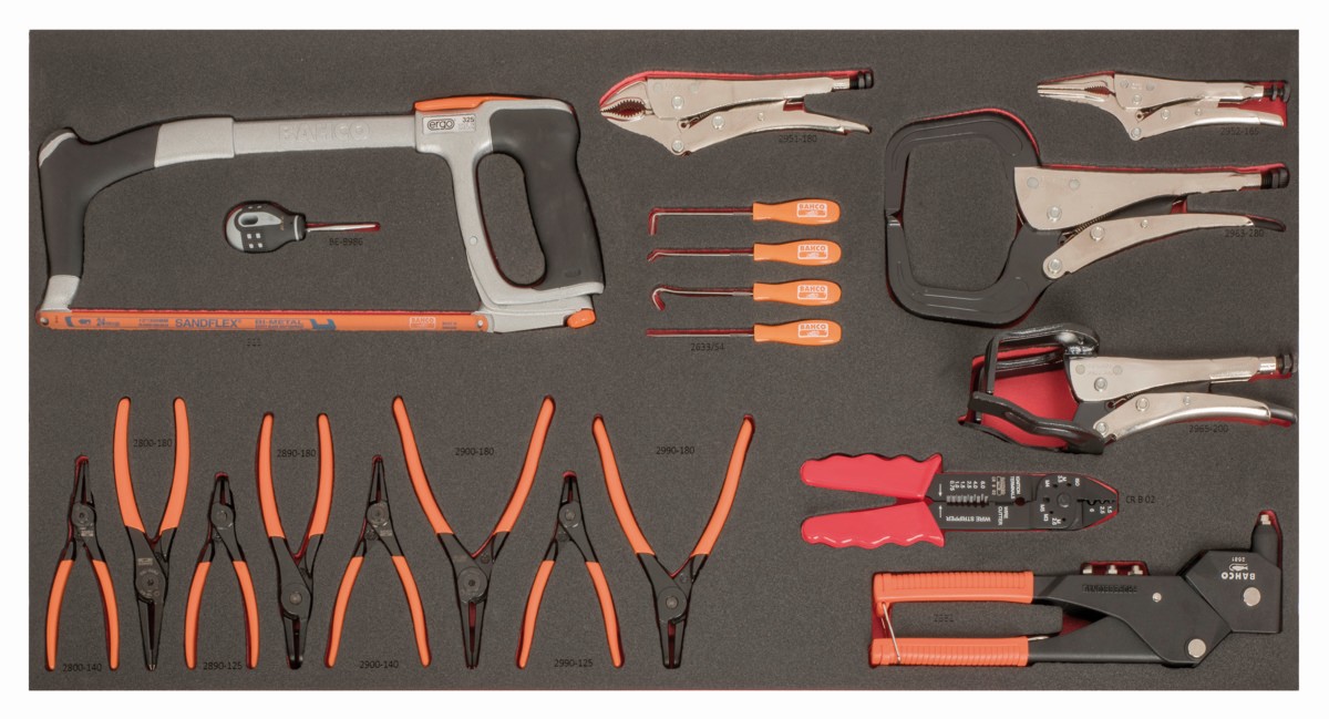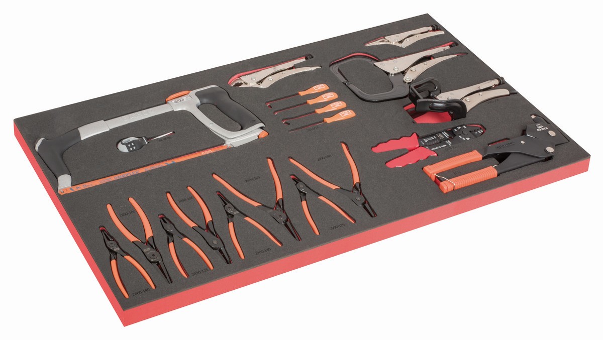 Bandeja de foam para carro de 40" con arco de sierra, alicates para arandelas y mordazas grip (20 piezas) | FF1B10LM de BAHCO